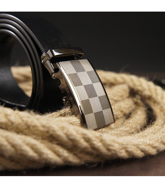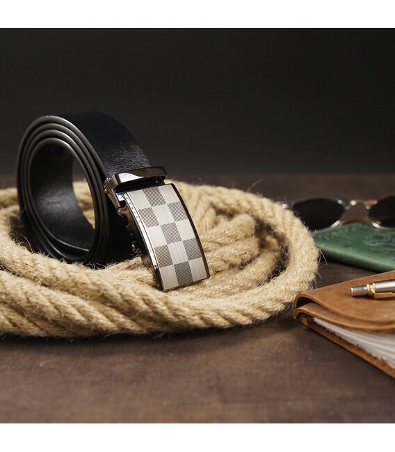 Стильний чоловічий ремінь з натуральної шкіри найвищої якості. Виконано аксесуар з цільного полотна. Дизайн ременя продуманий до дрібниць і відповідає всім модним тенденціям. Доповнено ремінь оригінальною пряжкою з міцного сплаву сріблястого кольору і тисненням у вигляді шахової дошки. Автоматичний ремінець дуже практичний. Виробництво - фабричний Китай. Шкіряний ремінь - кращий вибір для подарунка близькій людині.