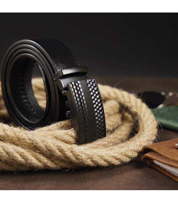 Ремінь чоловічий з автоматичною пряжкою мозаїка Vintage 20299 Чорний