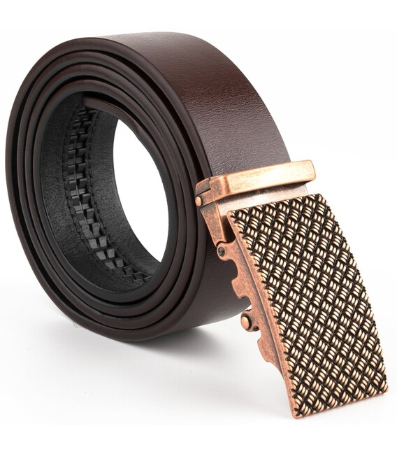 Стильний чоловічий ремінь з натуральної шкіри. Класичний коричневий колір підійде під будь-який одяг і взуття. Доповнено ремінь міцною пряжкою золотистого кольору з помаранчевим відливом і тисненням яке нагадує в'язаний светр. Виробництво - фабричний Китай високої якості. Модель підійде як під штани так і під джинси і додасть завершеності вашому образу. Ми впевнені на 100%, що аксесуар прослужить далеко не один рік. Рекомендуємо до покупки даний ремінець.