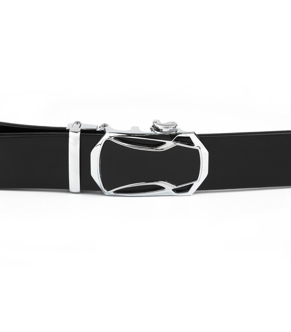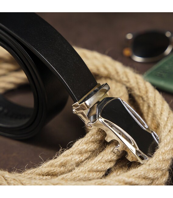 Чоловік шкіряний ремінь класичного чорного кольору з чорною оригінальною вставкою на пряжці. Виріб виконаний з натуральної шкіри. Пряжка - сріблястого кольору. Модель прекрасно підійде під будь-який образ. Якісний ремінь - обов'язковий елемент гардероба будь-якого чоловіка. Ремінь - автомат дуже практичний у використанні і прослужить вам далеко не один рік. Ремінець прекрасно підійде в якості подарунка для будь-якого чоловіка.