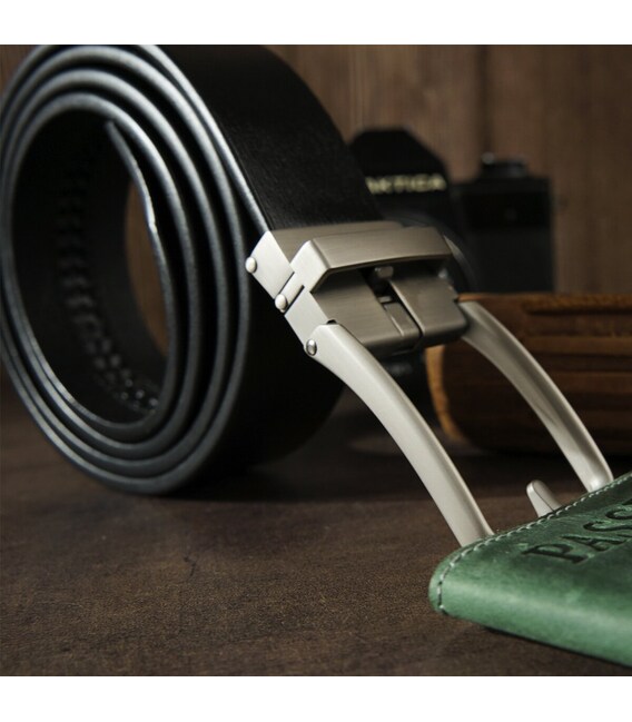 Ремінь чоловічий зі стильною пряжкою Vintage 20268 Чорний