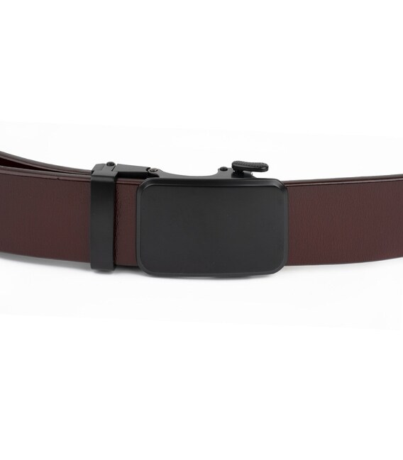 Ремінь чоловічий з чорною пряжкою автомат Vintage 20271 Коричневий