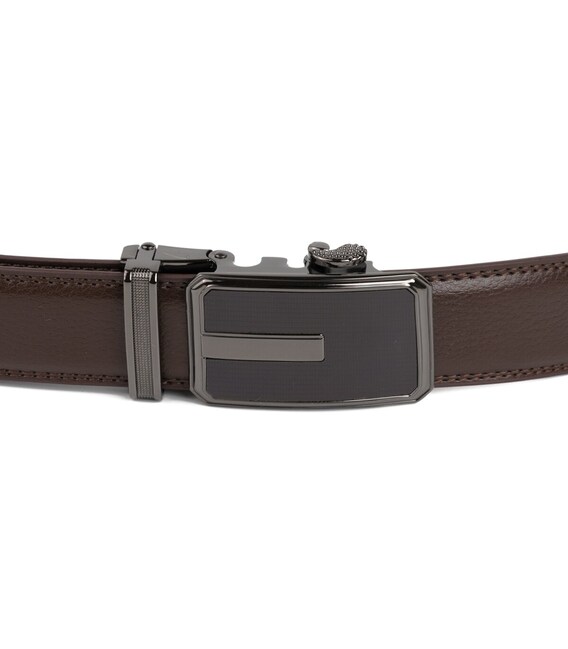 Детальніше Ремінь чоловічий тонкий з пряжкою автомат і коричневою заливкою Vintage 20308 Коричневий