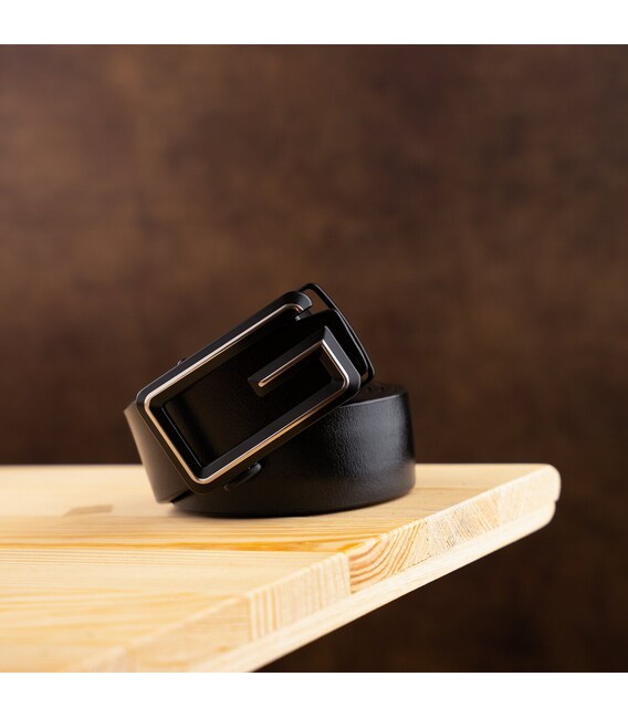 Якісний шкіряний ремінь чорного кольору з натуральної шкіри. Виріб прекрасно підійде під будь-який ваш образ. Пряжка ремінця нагадує букву G в поєднанні з затемненим металом. Автоматична пряжка дуже проста в експлуатації. Ремінь не прив'язує вас до певного взуття. За якістю аксесуар нічим не поступається дорогим брендам, але при цьому коштує значно дешевше. Впевнені, що ремінь підкорить будь-якого чоловіка. Рекомендуємо вам дану модель, якщо ви перебуваєте в пошуку якісного повсякденного ременя.