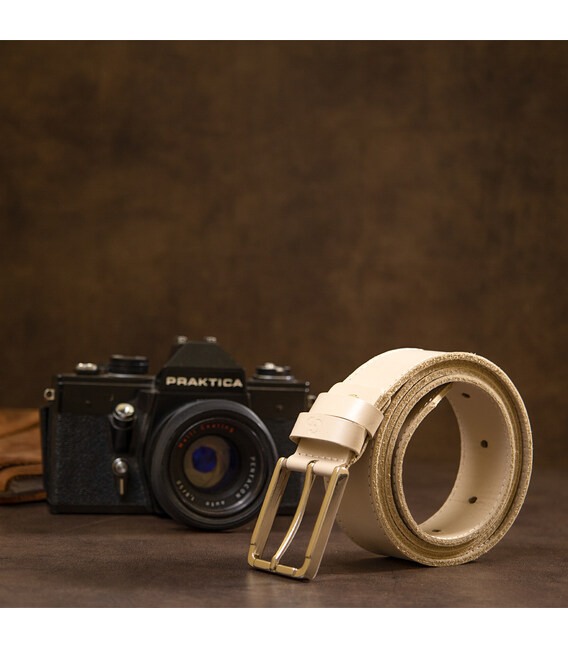 Шкіряний ремінь унісекс GRANDE PELLE 11450 Бежевий