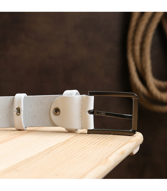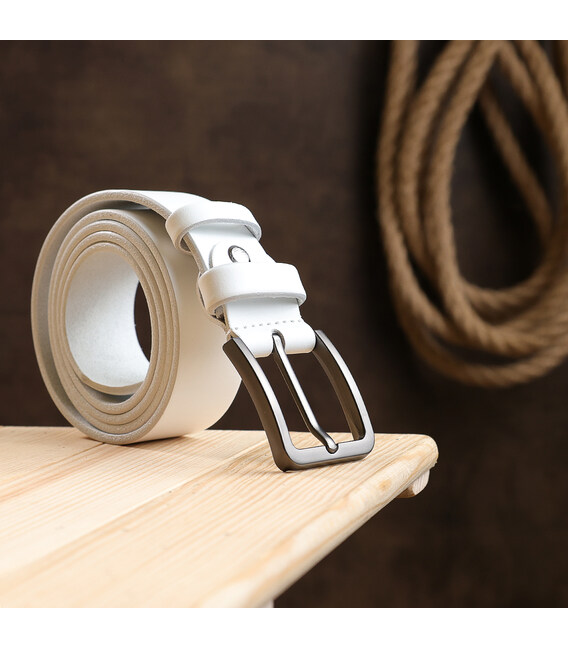 Відмінний ремінь з високоякісної шкіри з високими показниками зносостійкості. Має гарний білий колір, класичну акуратну пряжку і гладку приємну на дотик фактуру. Такий ремінь можна піднести як подарунок на будь-яке свято дорогій Вам людині.