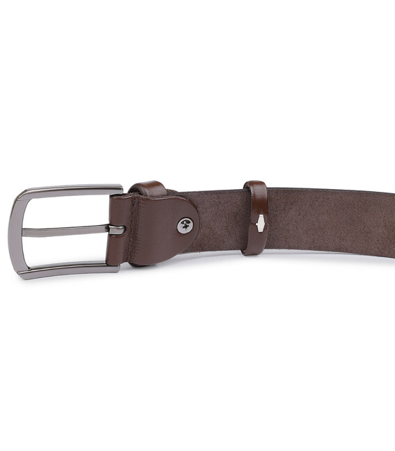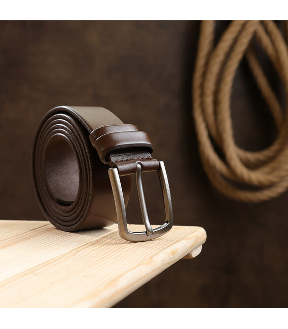 Добротний чоловічий ремінь середньої довжини в універсальному коричневому кольорі. Має гладку і приємну на дотик фактуру і класичну пряжку в строгому непомітному дизайні. Виготовлений ремінь з натуральної високоміцної шкіри і має високі показники стійкості до зношування.