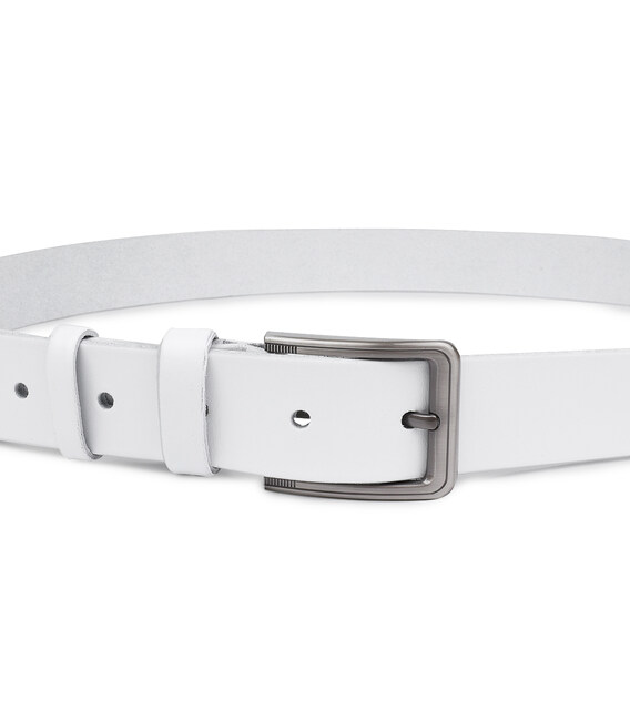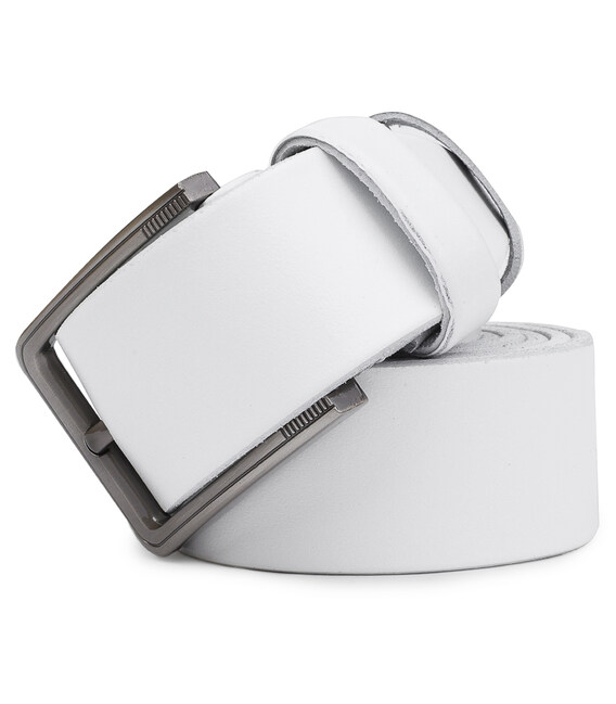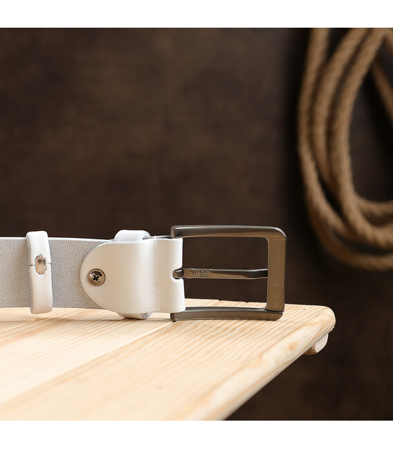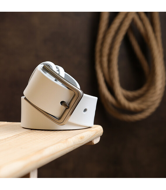 Чудовий чоловічий ремінь в білому кольорі з гладкою приємною на дотик фактурою. Матеріал виготовлення - натуральна високоміцна шкіра, якість якої на найвищому рівні. Пряжка має лаконічний непомітний дизайн і класичний механізм. Такий ремінь стане хорошим подарунком дорогій людині.