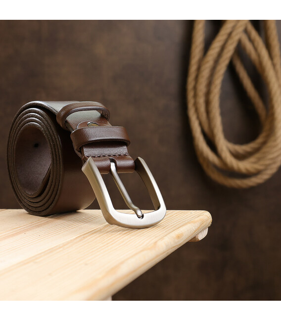 Стильний чоловічий ремінь з гладкою приємною на дотик фактурою. Виконаний з натуральної зносостійкої шкіри високого класу. Має класичну надійну пряжку, яка зручна в застосуванні. Колір виробу - коричневий, що дуже модно і популярно, а головне - поєднується з будь-яким стилем одягу.