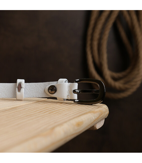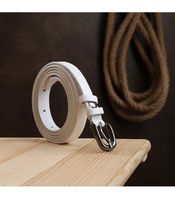 Тонкий легкий ремінець для жінок в ніжному білому кольорі. Виготовлений з високоміцної і зносостійкої натуральної шкіри, завдяки якій виріб буде радувати Вас дуже довго. Пряжка в даній моделі - класична, фактура - гладка і приємна на дотик. Такий ремінь стане практичним і дуже корисним подарунком.