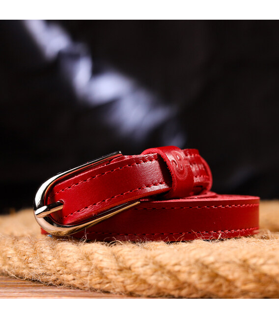 Вузький жіночий ремінь із натуральної шкіри Grande Pelle 21440 Червоний