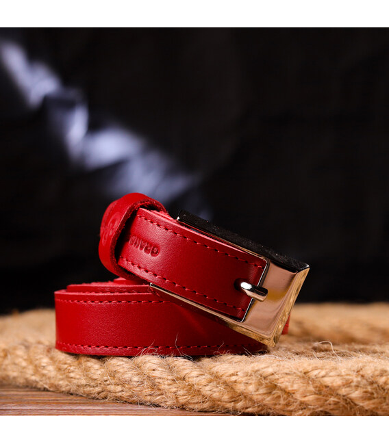 Яскравий жіночий ремінь із високоякісної італійської шкіри. Виріб прошито по краях рівним рядком червоного кольору, що надає йому стильного та вишуканого вигляду. Аксесуар буде відмінно поєднуватись, як зі штанами, так і з сукнею, блузкою або тунікою. Пряжка виконана з якісної фурнітури, з гострими краями, дуже акуратна та стильна. Колір пряжки: срібло. Тиснення логотипу бренду додає виробу стилю, а також є запорукою якості та оригінальності продукції. Шкіряний ремінь буде завжди актуальним подарунком для себе, подруги чи колеги.