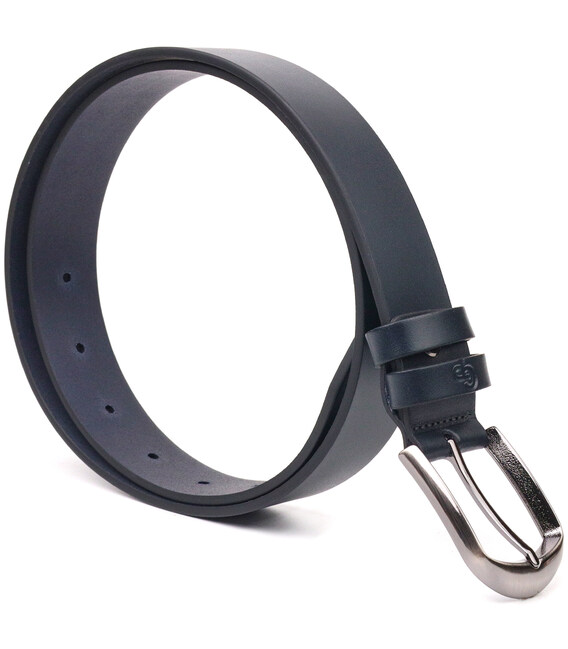 Красивий шкіряний ремінь синього кольору з натуральної італійської шкіри, від українського виробника. Хороший ремінь здатний ідеально завершити образ та підкреслити ваш статус. Ремінь виготовлений із цілісного полотна шкіри. Аксесуар має гладку фактуру, акуратно пошитий, довжина регулюється у менший бік. Доповнено ремінець сріблястою пряжкою із закругленими кутами. Шкіряний ремінь один із найвдаліших та потрібних подарунків для будь-якого чоловіка.