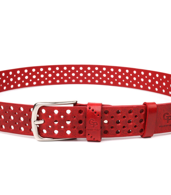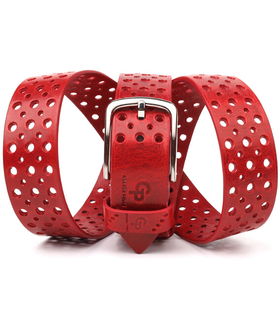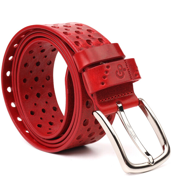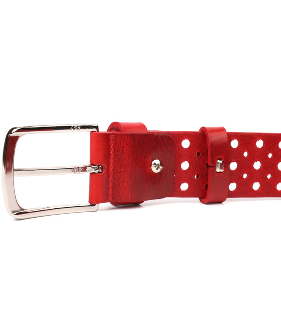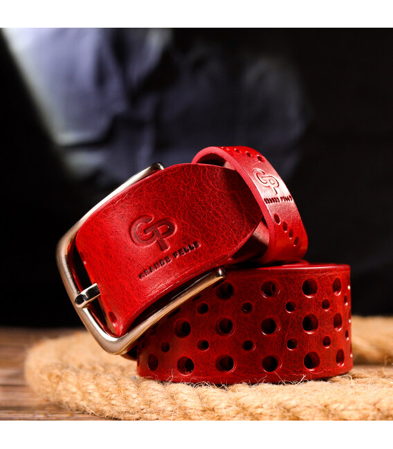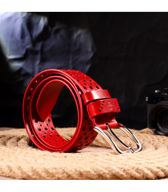 Ремінь жіночий з перфорацією з натуральної шкіри Grande Pelle 21477 Червоний