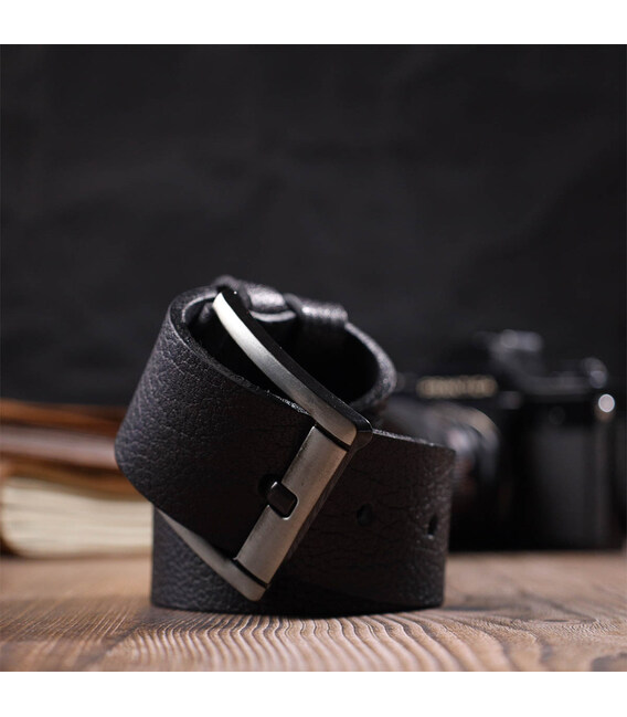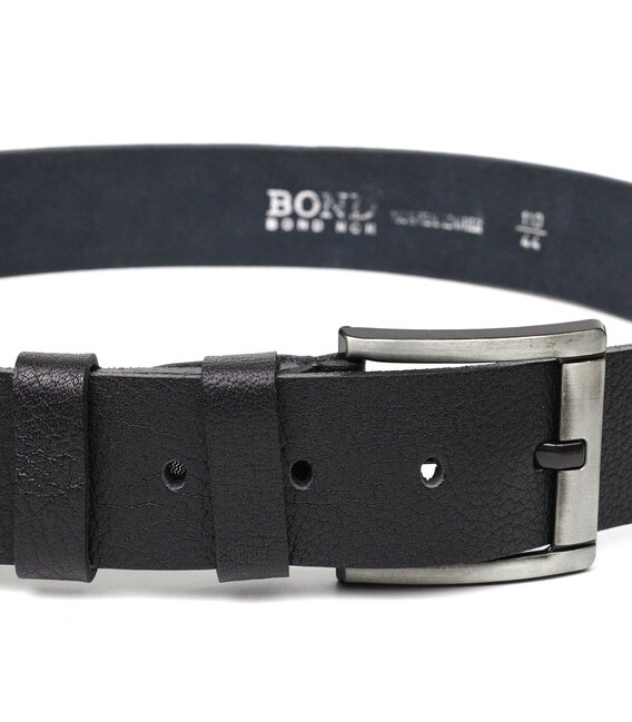 Чоловічий джинсовий ремінь з механічною пряжкою з натуральної шкіри BOND 22070 Чорний