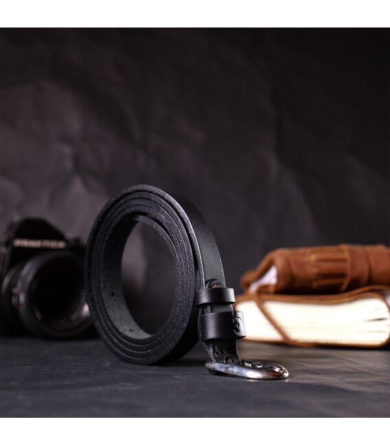 Вузький жіночий ремінь із натуральної шкіри GRANDE PELLE 11672 Чорний