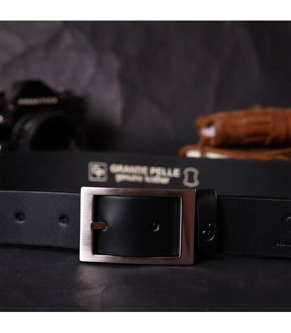Шкіряний брючний ремінь для чоловіків з квадратною пряжкою GRANDE PELLE 11678 Чорний