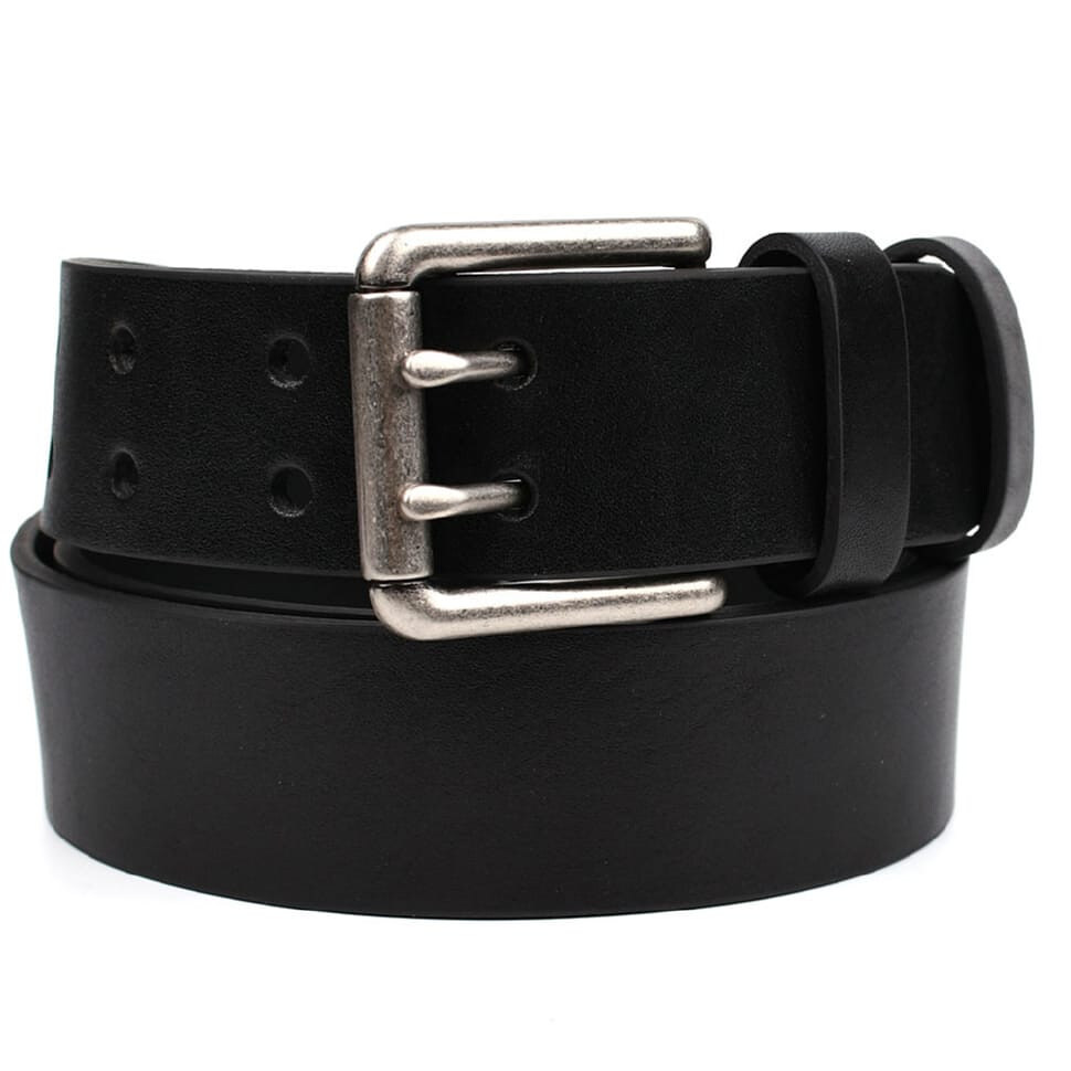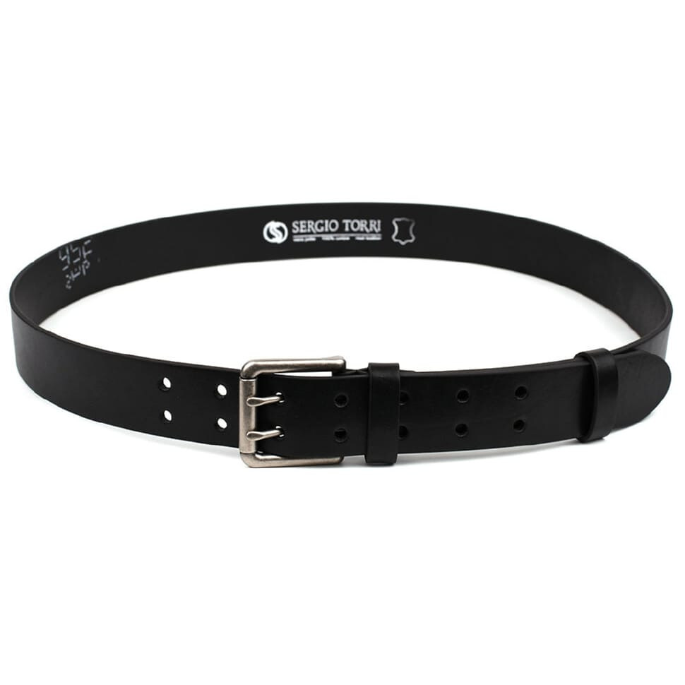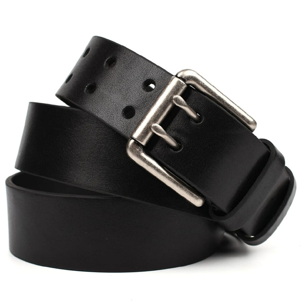 Ремінь зі шкіри буйвола st044624-2 чорний 40мм, офіцерський, на два язички. Ремінь підходить як для штанів, так і для джинсів. Колір шкіри – чорний. Пряжка класична, металева
