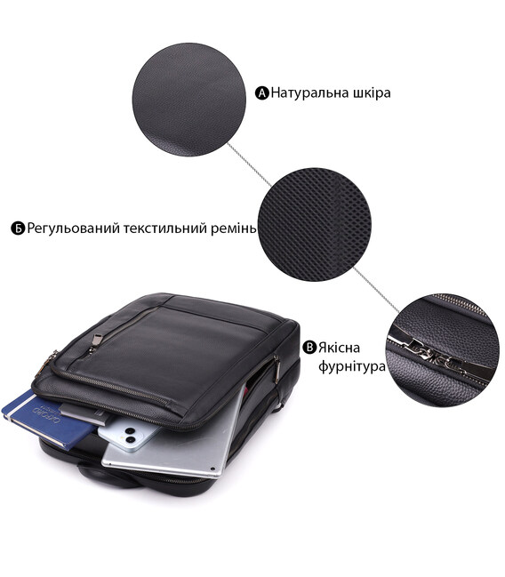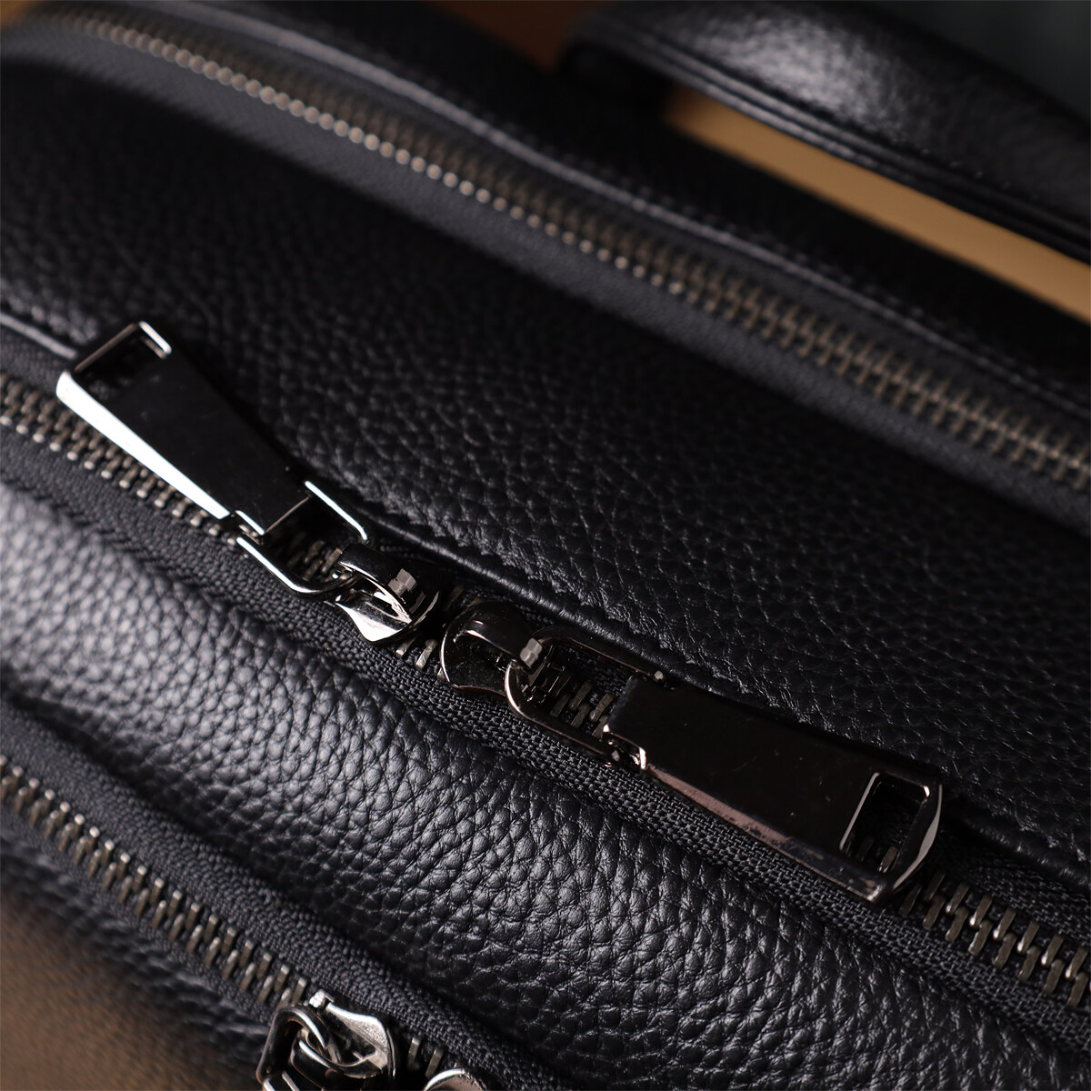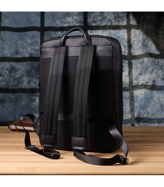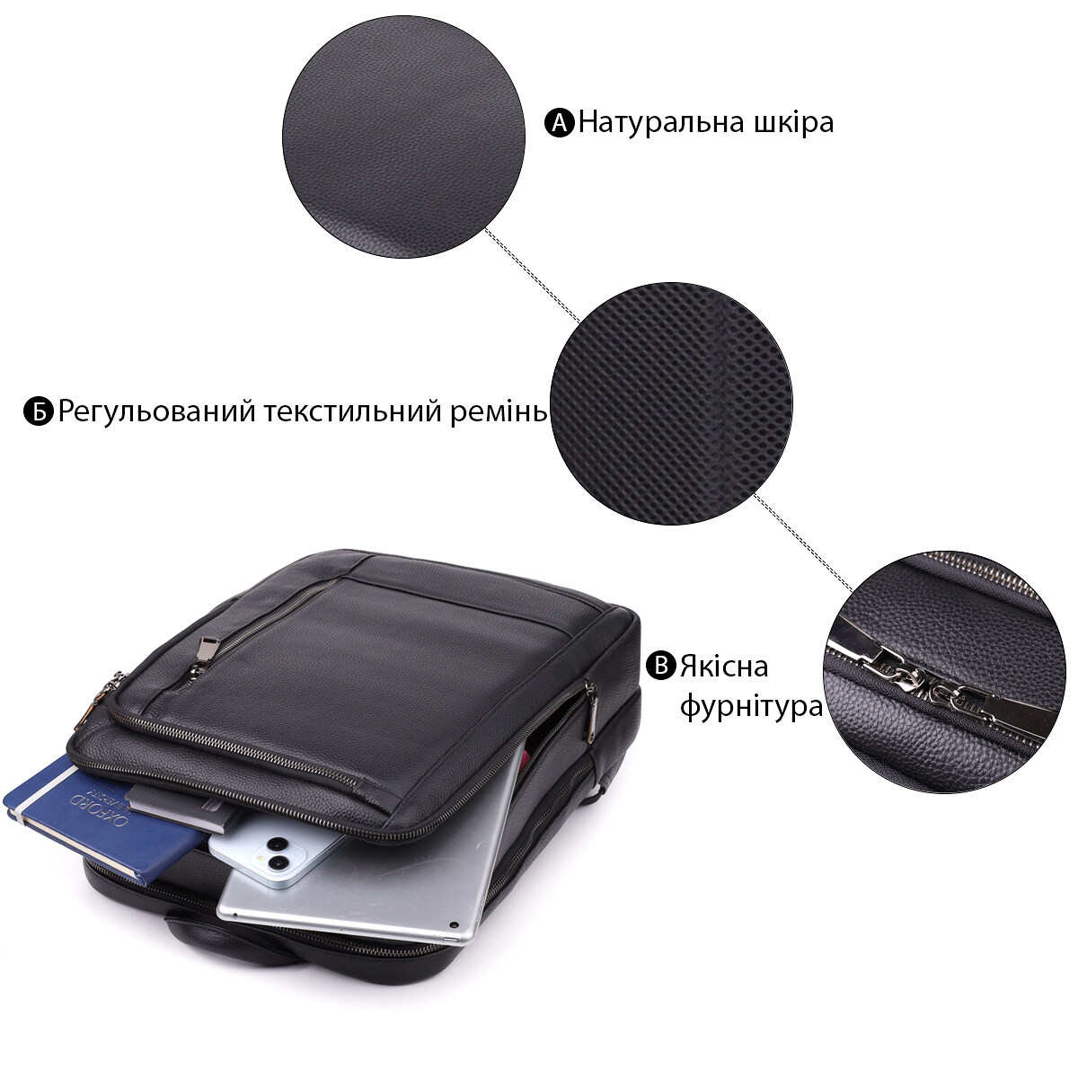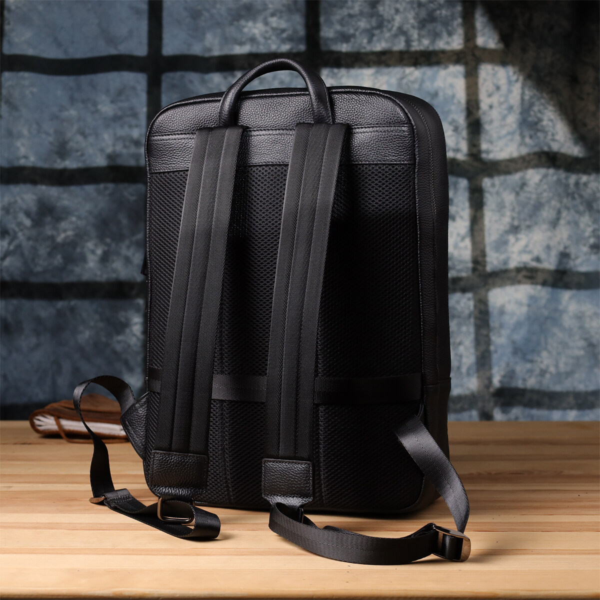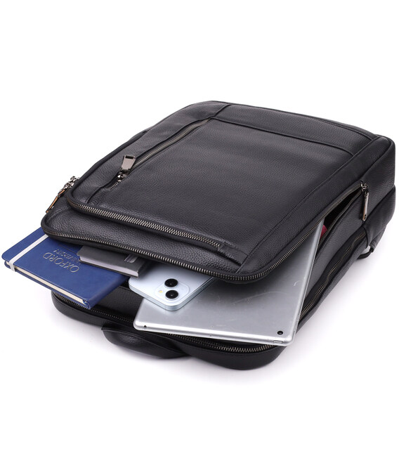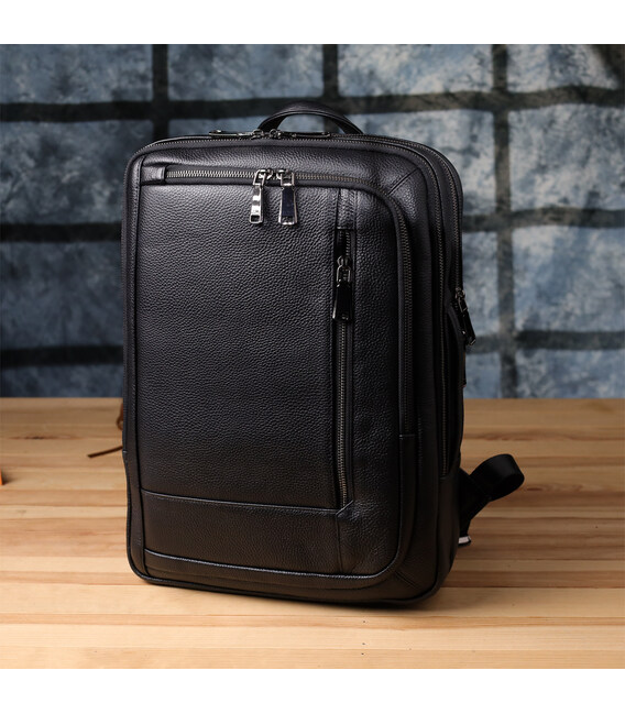 Чоловічий шкіряний рюкзак виконаний з якісної натуральної шкіри та поєднує стиль із максимальною зручністю. Модель оснащена двома основними відділеннями на блискавках з подвійними бігунками, що забезпечує швидкий доступ та зручний поділ вмісту.