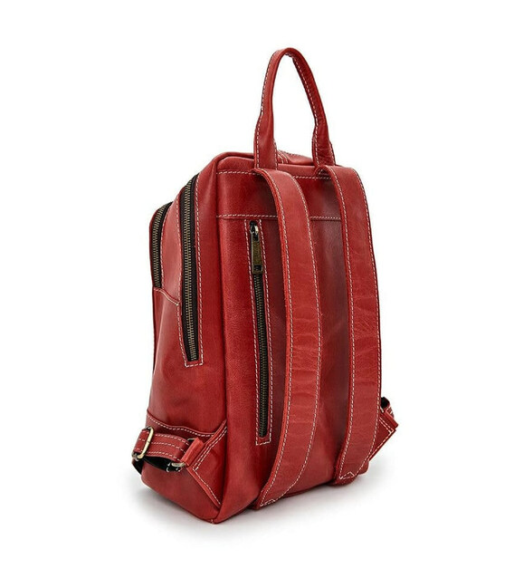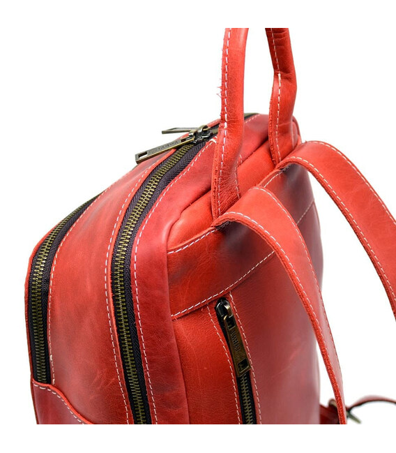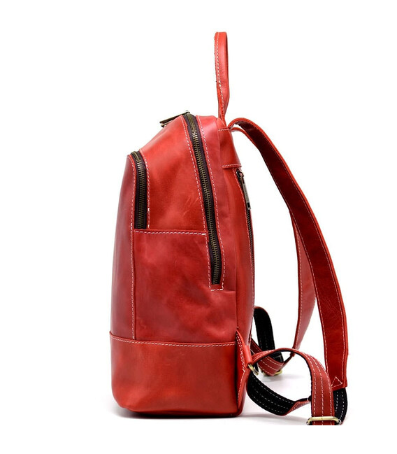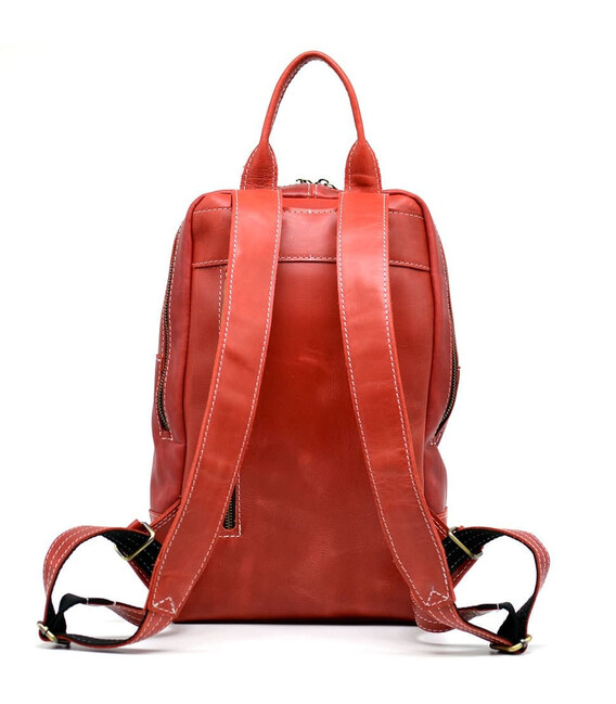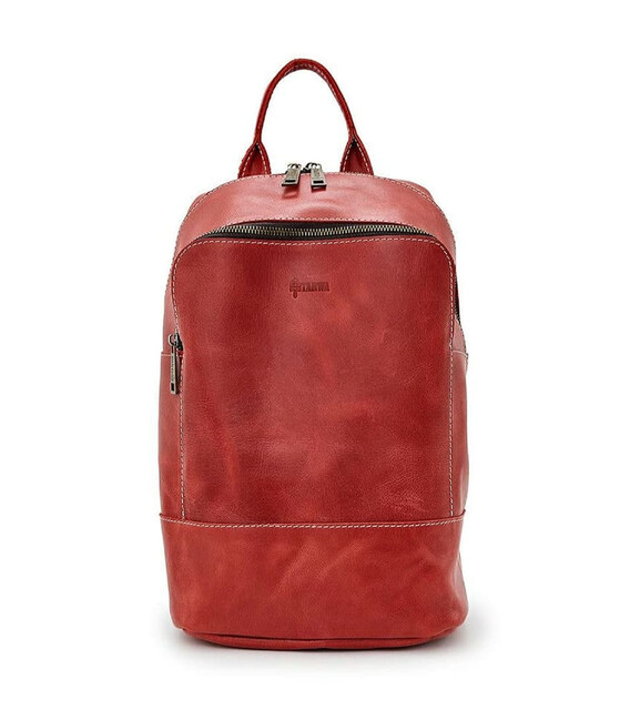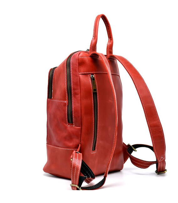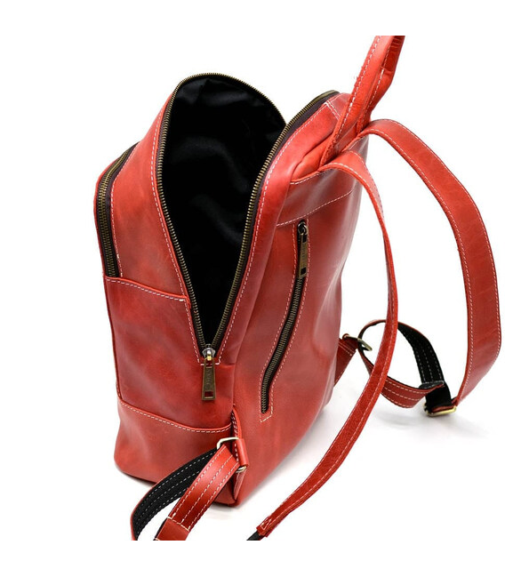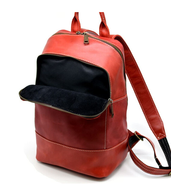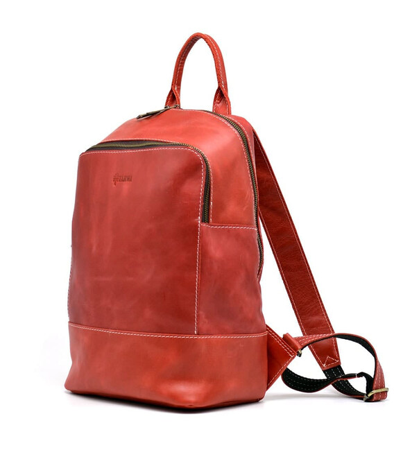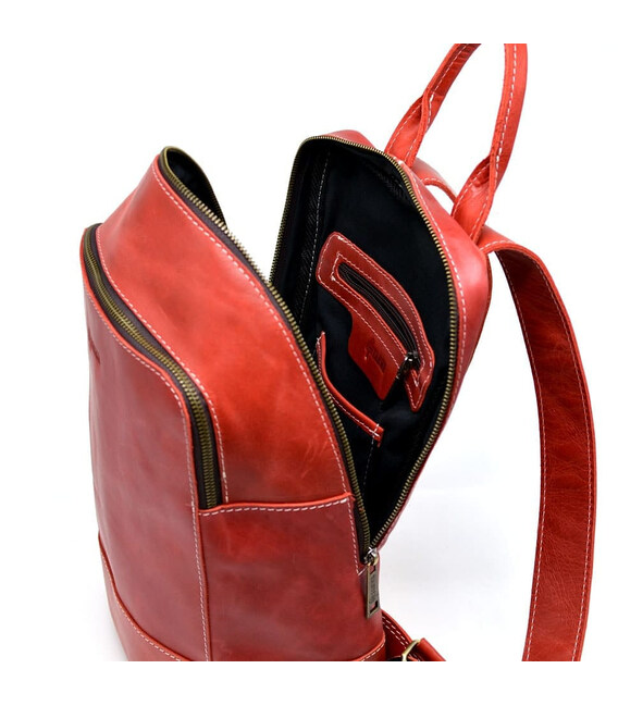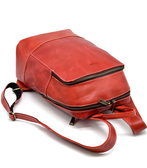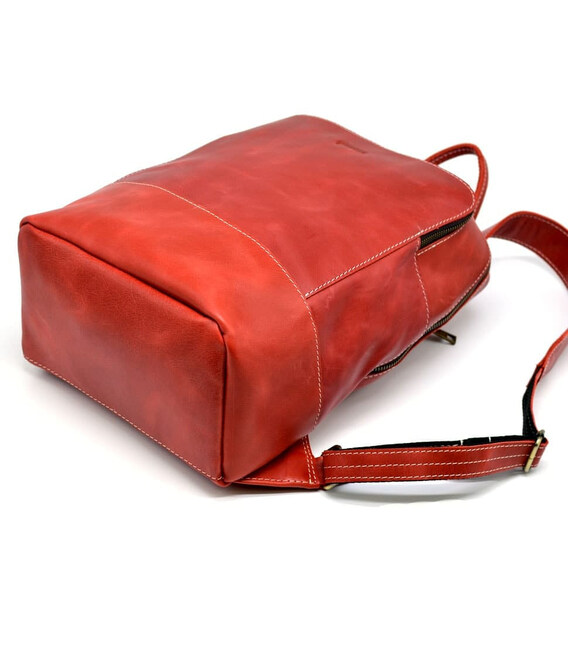 Жіночий червоний шкіряний рюкзак TARWA RR-2008-3md середнього розміру. Дві шкіряні шлейки, шкіряна ручка, шкіряне дно. Усередині тканинної подклад. Зроблено в Україні.