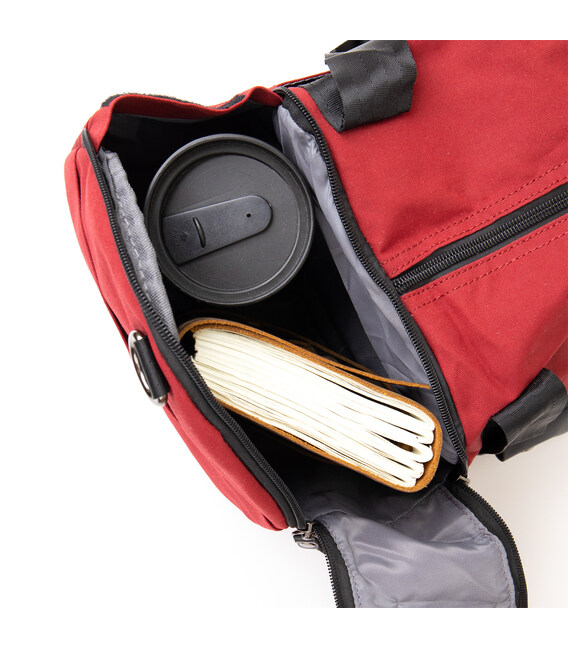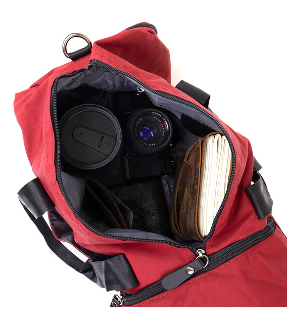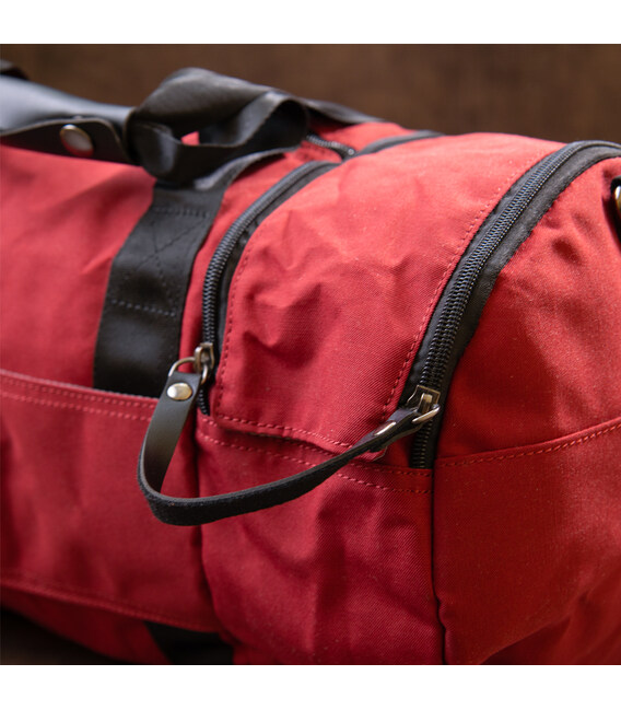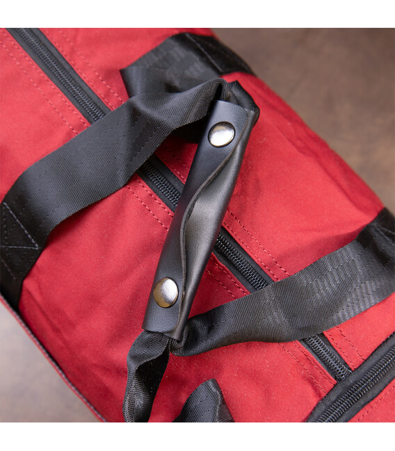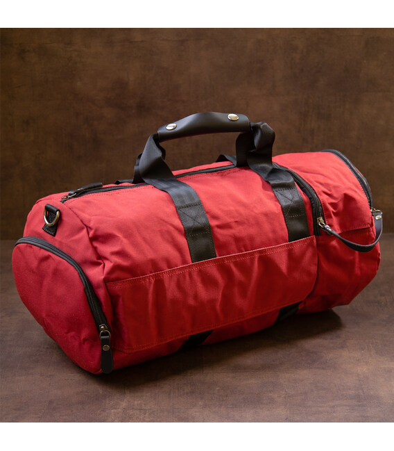 Текстильна дорожня сумка червоного кольору. Сумка підійде як для занять спортом, так і в якості дорожньої сумки. Виріб дуже практичний і не важкий. Сумка має компактні розміри і стане хорошим варіантом для відрядження. В сумку можна зручно помістити пару кросівок до відповідного відділення. У сумці також є петелька для носіння каремата або килимка (щоб його зафіксувати). Сумка з текстилю - ідеальний бюджетний варіант.