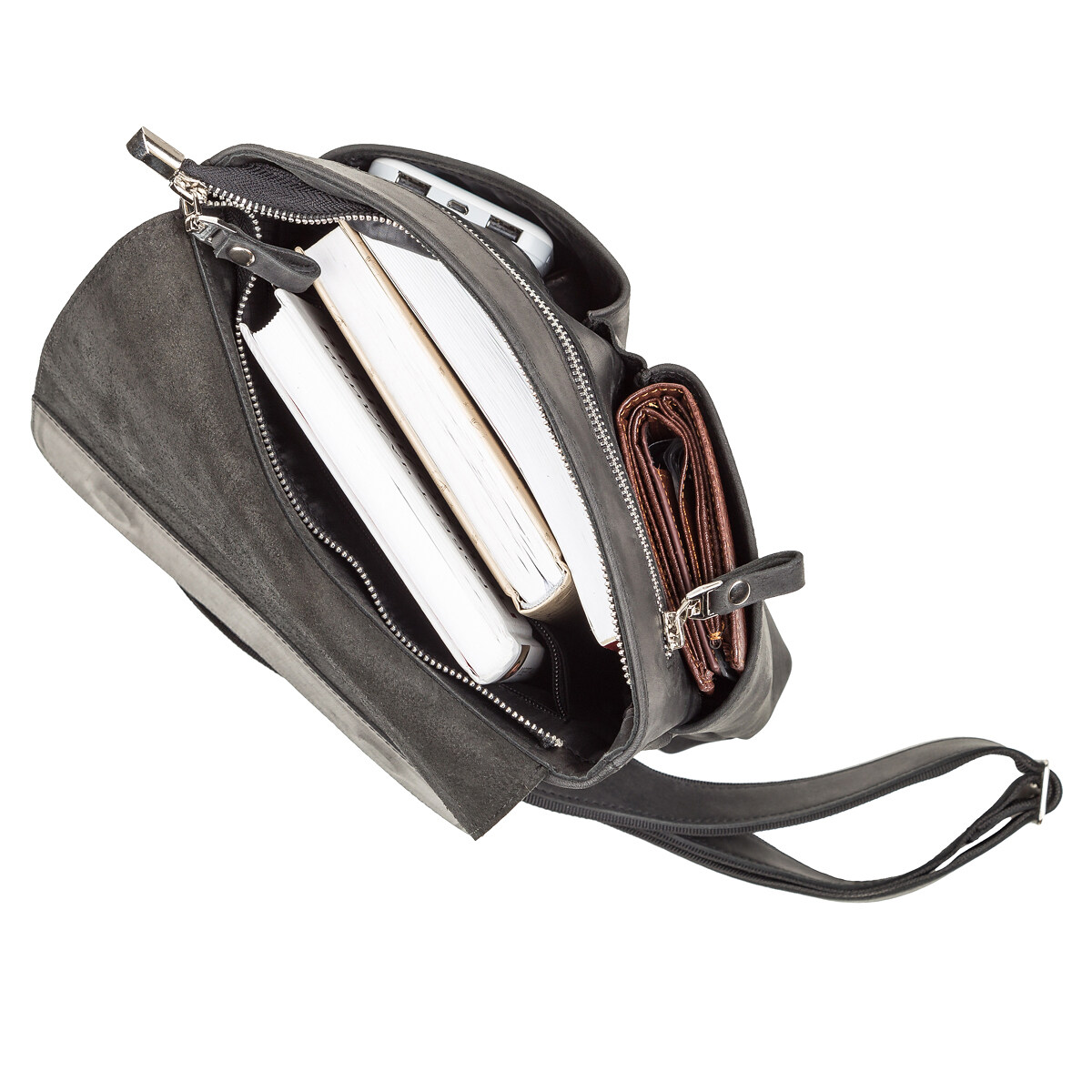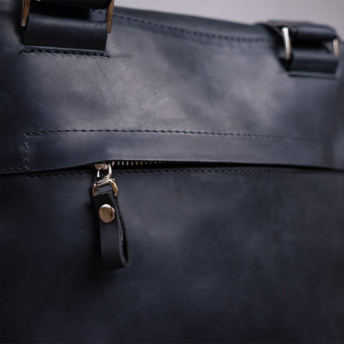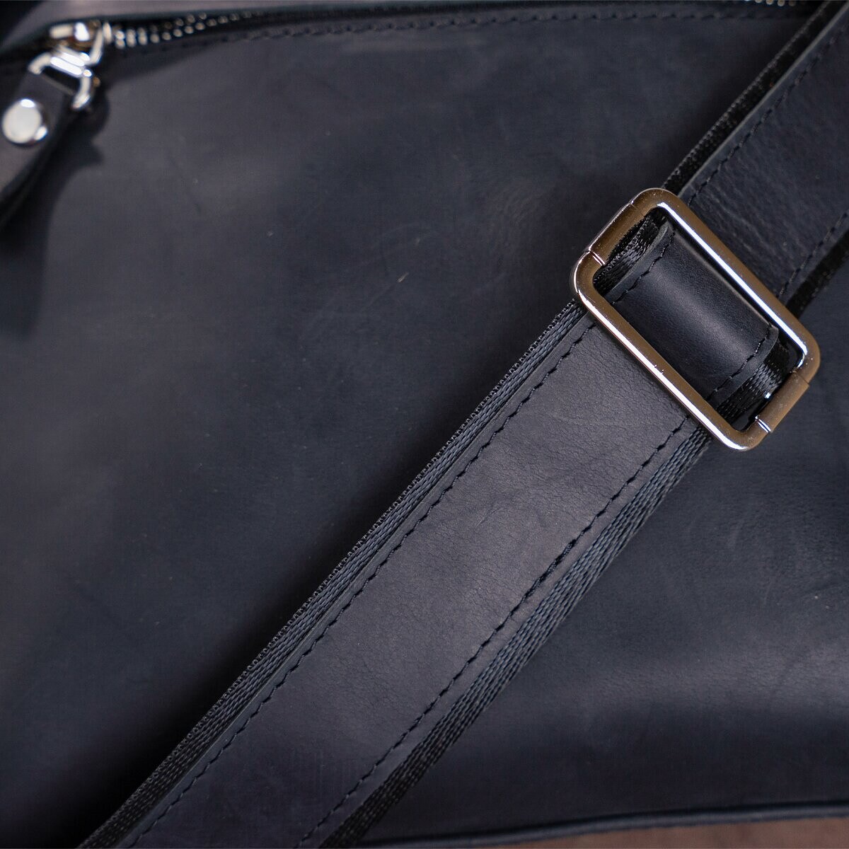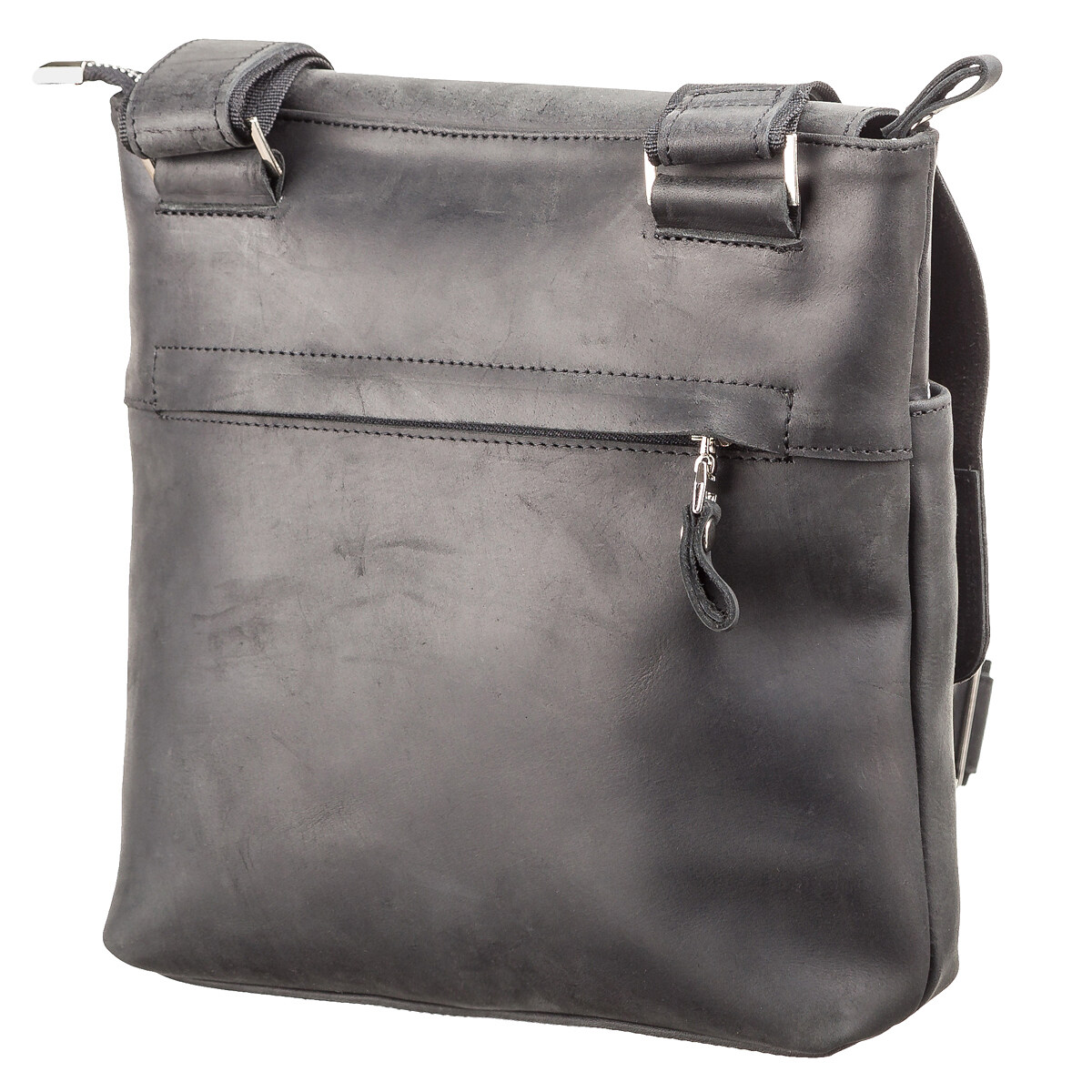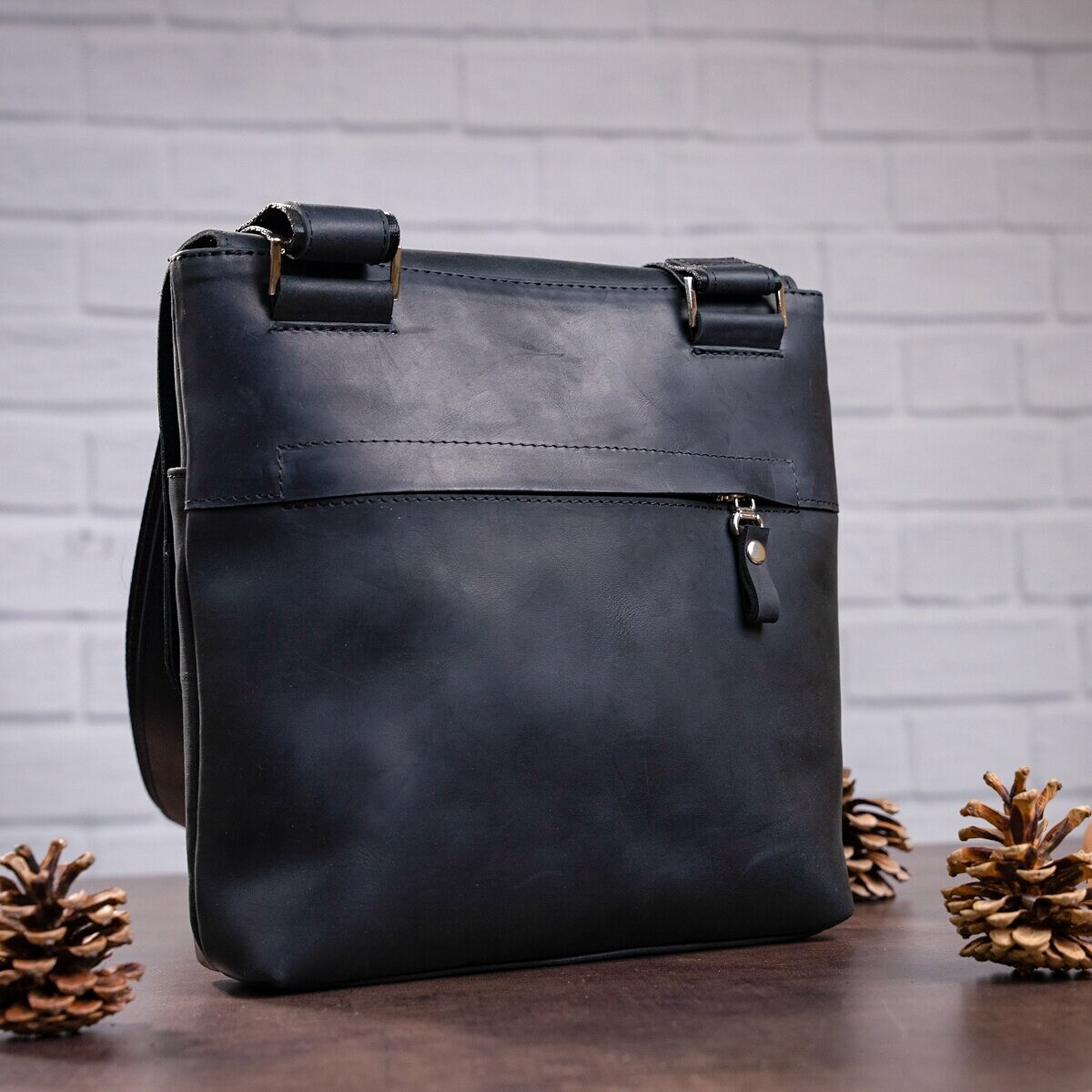 Сумка середніх розмірів з натуральної вінтажної шкіри для чоловіків, які щодня носять з собою багато дрібних речей (ключі, телефон, блокнот, портмоне, невеликий планшет, і т.д.). Аксесуар досить вмісткий для своїх розмірів, закривається за допомогою клапана на магнітах, для додаткового захисту речей на блискавку.
