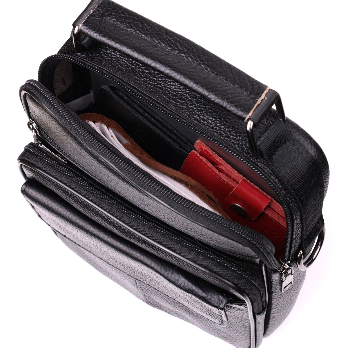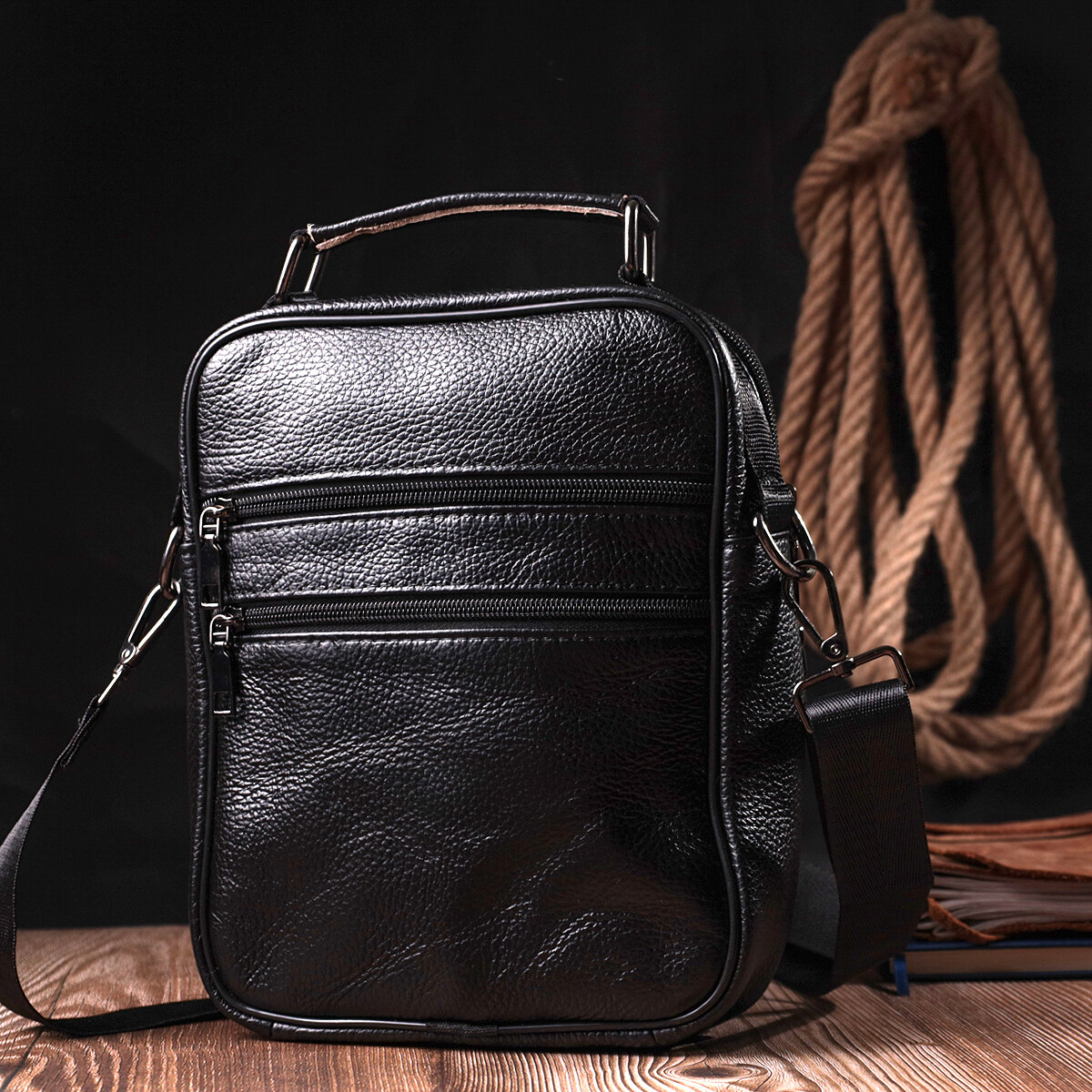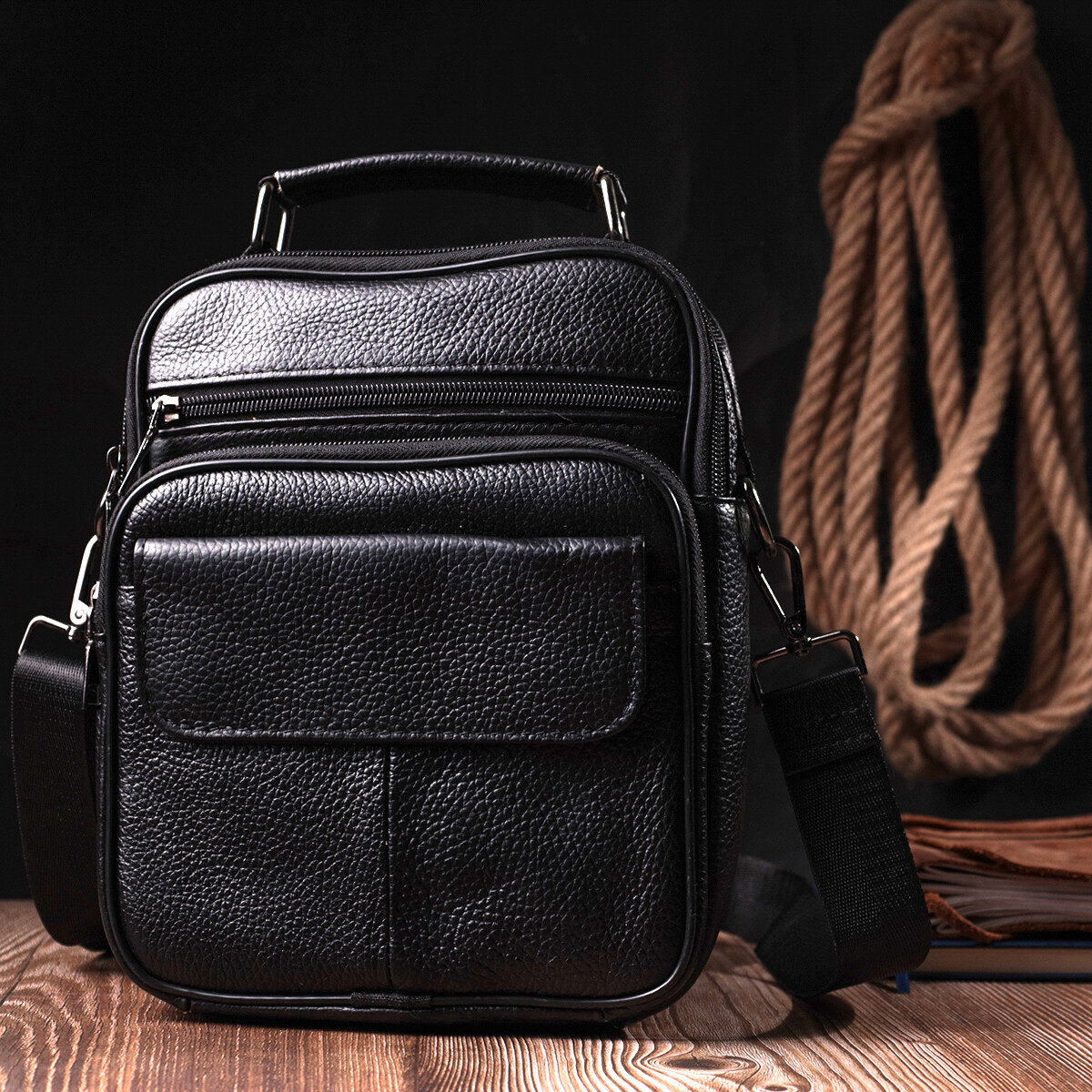 Стильний чоловічий месенджер із натуральної шкіри. Аксесуар можна носити в руці, на плечі та через плече, для цього передбачена шкіряна ручка та знімний плечовий ремінь. У виробі використано якісну фурнітуру та надійну підкладку. По краях аксесуар прошитий рівним рядком. Сумка стане чудовим подарунком для будь-якого чоловіка.