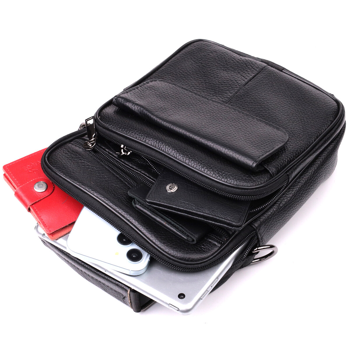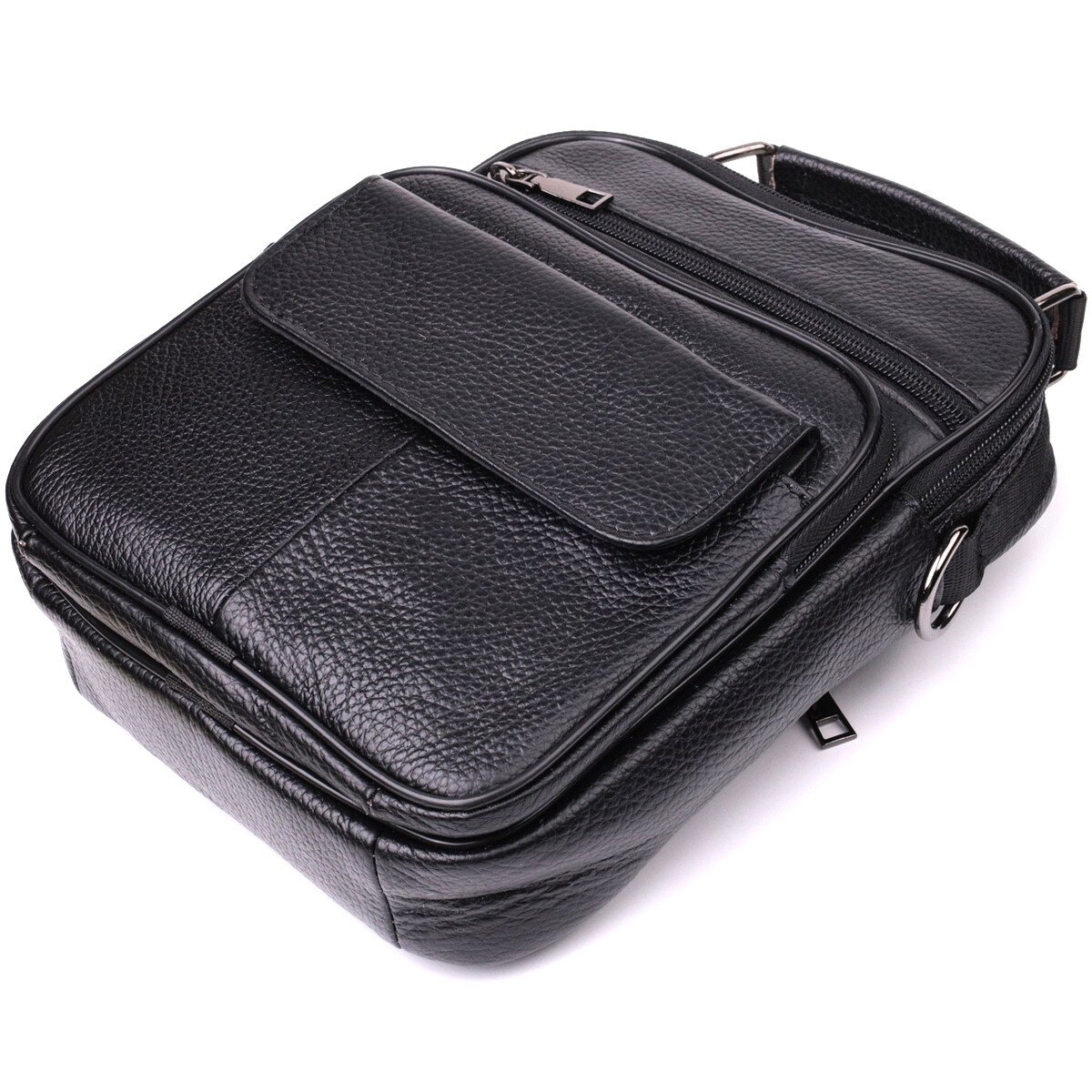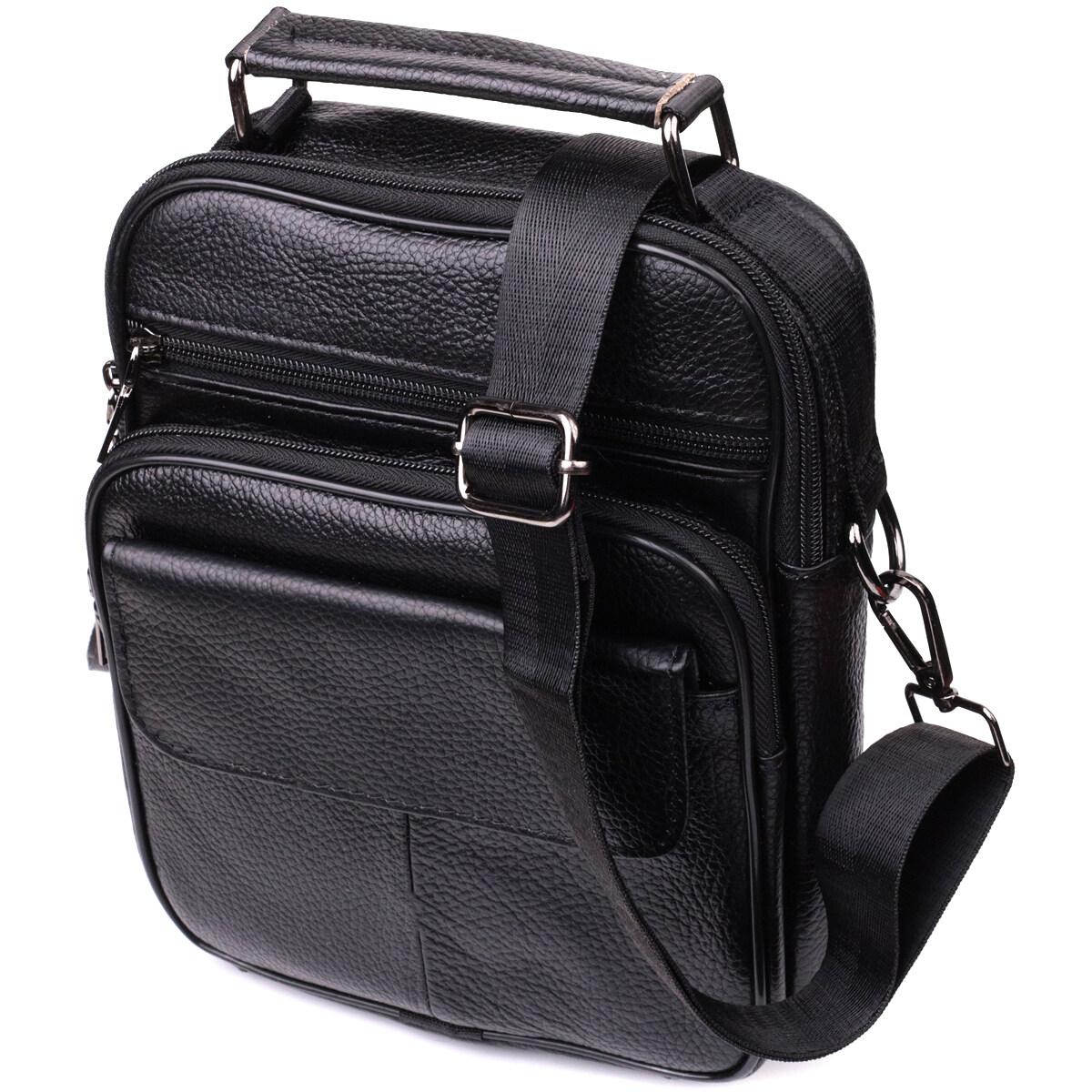Стильний чоловічий месенджер із натуральної шкіри. Аксесуар можна носити в руці, на плечі та через плече, для цього передбачена шкіряна ручка та знімний плечовий ремінь. У виробі використано якісну фурнітуру та надійну підкладку. По краях аксесуар прошитий рівним рядком. Сумка стане чудовим подарунком для будь-якого чоловіка.