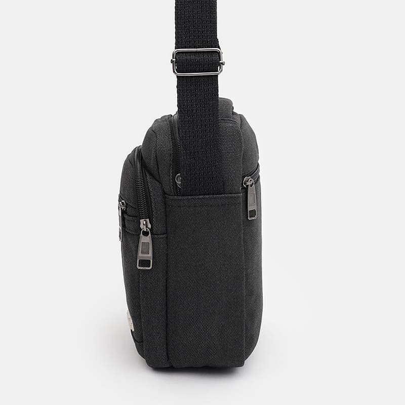 Чоловіча сумка виготовлена ​​з міцного текстилю. Має 1 основне відділення на блискавці. Усередині сумки є 1 кишеня на блискавці та 1 кишеня для телефону або інших дрібниць. З лицьового боку-2 кишені на блискавці, з тильної-1 кишеня на блискавці. Підкладка текстилю. Незнімний ремень регулюється по довжині.