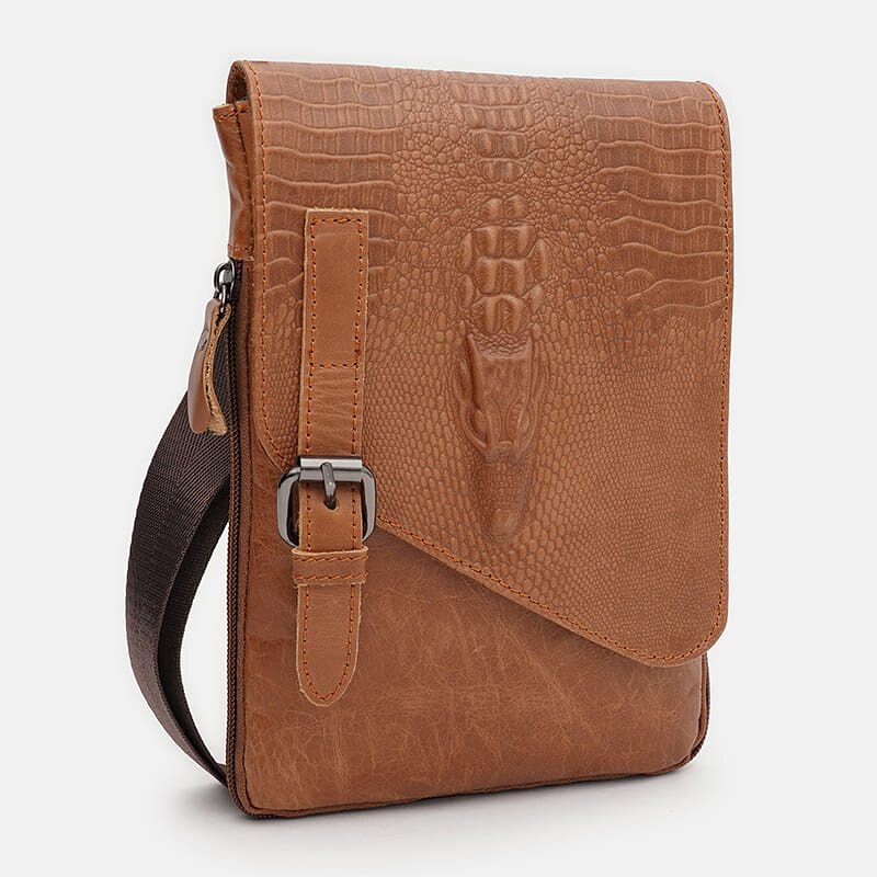 Чоловіча шкіряна сумка закривається на клапан із магнітом. на блискавку. Основне відділення на блискавці, всередині одна кишеня. З лицьового та зовнішнього боку - по 1 кишені. Підкладка текстиль, текстильний ремінь, що знімається, регулюється по довжині.