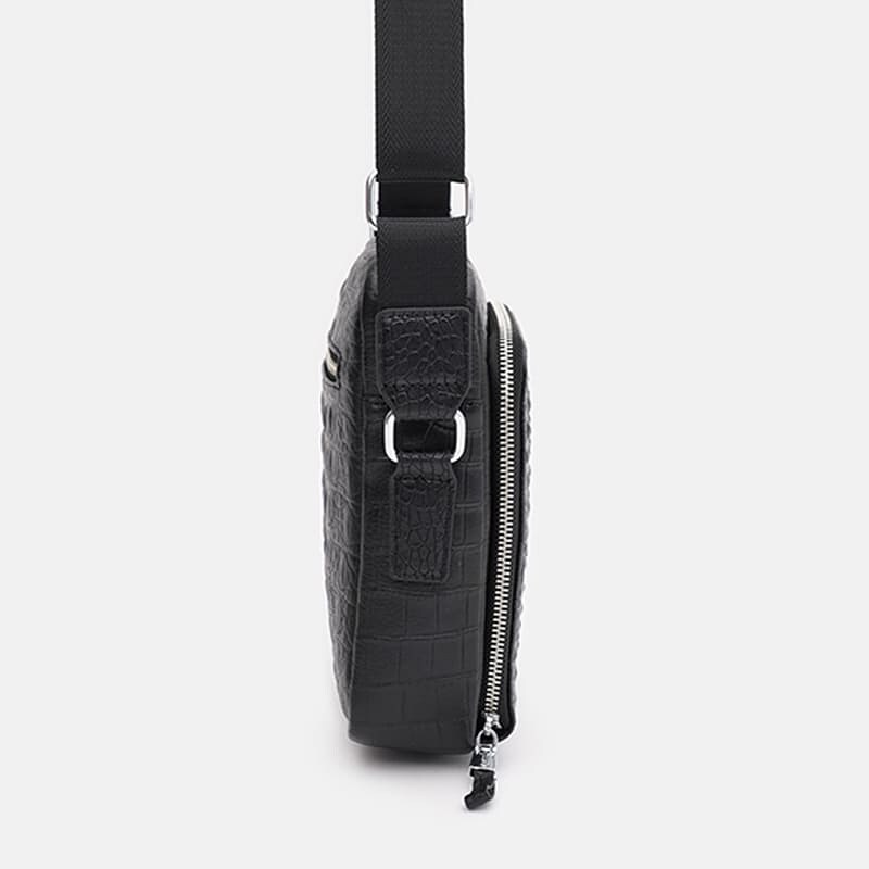 Чоловіча сумка виготовлена з міцної натуральної шкіри. Має 1 основне відділення на блискавці. Усередині 2 кишені для телефону та інших аксесуарів. З лицьового та тильного боку по 1 кишені на блискавці. Підкладка текстиль. Незнімний текстильний ремінь регулюється по довжині.
