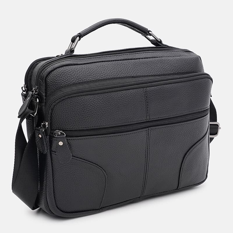 Чоловіча сумка виготовлена з якісної міцної шкіри. Закривається на блискавку. Має 2 місткі відділення на блискавках. Усередині 2 кишені для телефону та інших дрібниць. З лицьового боку-2 кишені, з тильної-1 кишеню. Підкладка з текстилю. У комплекті: незнімна ручка зі шкіри та незнімний текстильний ремінь, який регулюється по довжині.