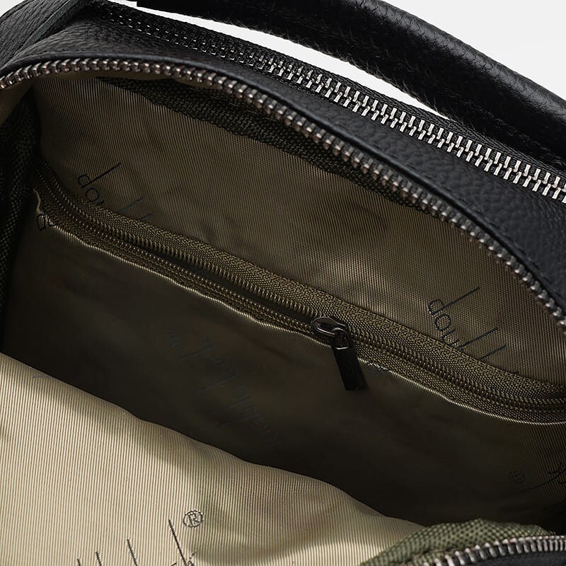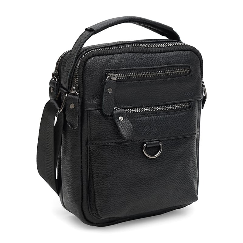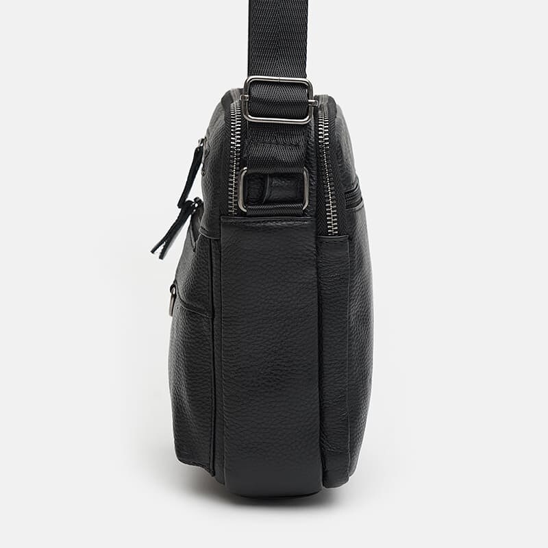 Чоловіча шкіряна сумка має 2 відділення, що закривається на блискавку. З лицьового боку 2 кишені, з зовнішньої-1 кишеня, всередині 1 кишеня для телефону та дрібниць. Підкладка-текстиль. Незнімний плечовий ремінь із текстилю, ручка з натуральної шкіри.