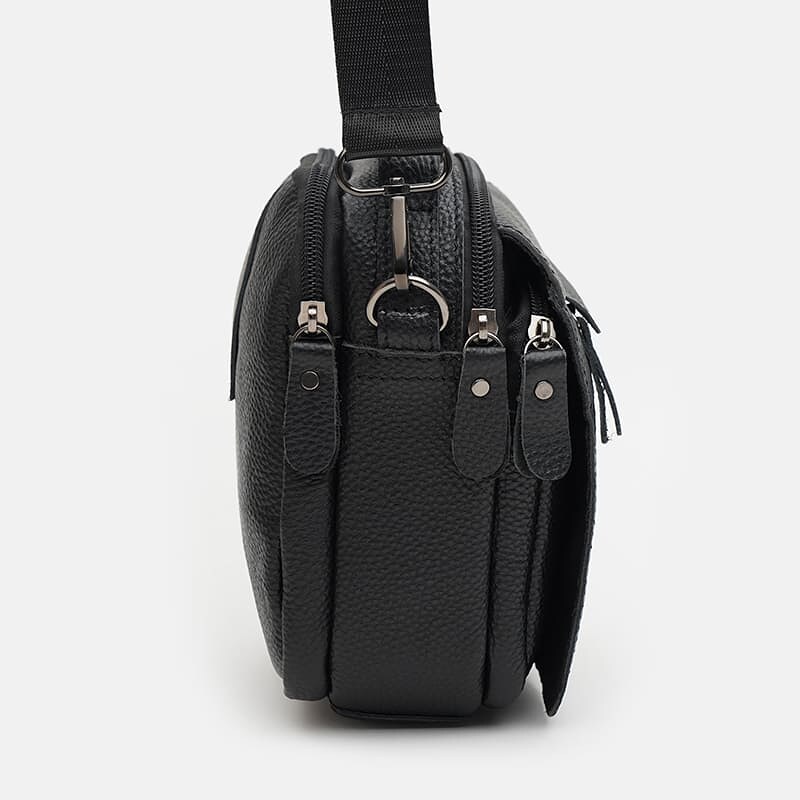 Чоловіча шкіряна сумка закривається на блискавку, має 1 головне відділення. З лицьового боку-2 кишені, з зовнішньої-1 кишеню. Текстиль підкладка. Знімний плечовий ремінь із текстилю, ручка зі шкіри.