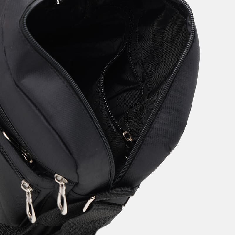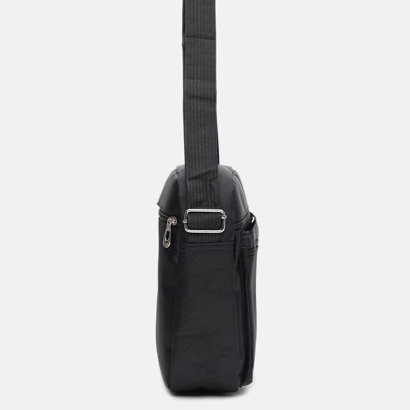 Чоловіча сумка виготовлена з текстилю. Має середній розмір та одне відділення на блискавці. Всередині 1 кишеня на блискавці. Зовні 4 місткі кишені на блискавці. Підкладка-текстиль. Плечовий ремінь регулюється по довжині.