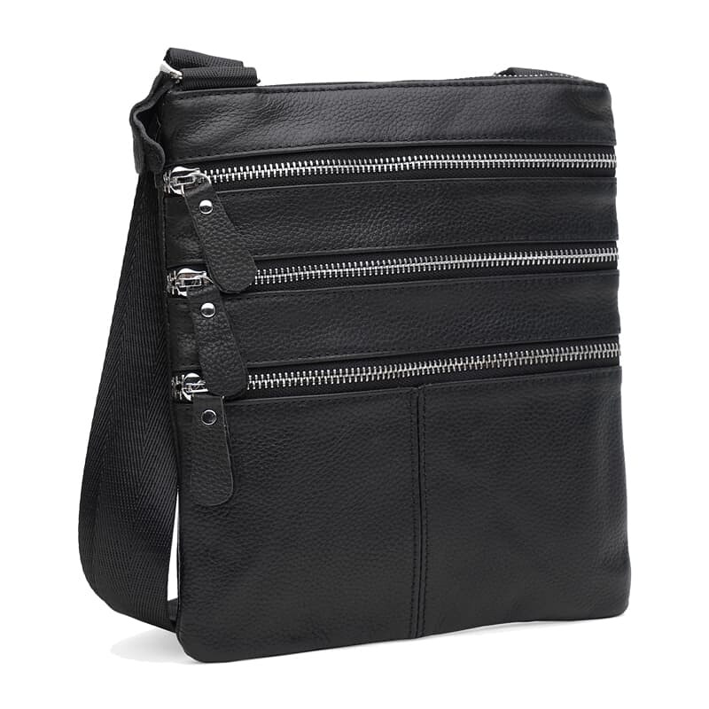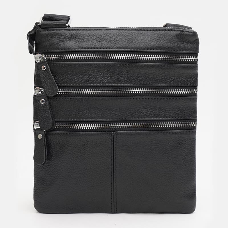 Сумка виготовлена з натуральної шкіри. Має 1 відділення на блискавці. Всередині 1 кишеня на блискавці. Зовні 4 кишені на блискавці. Підкладка-текстиль. Плечовий ремінь регулюється по довжині.