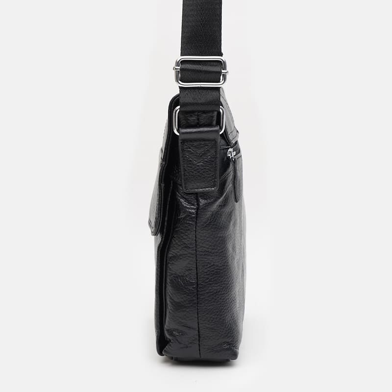 Сумка виготовлена з натуральної шкіри. Закривається клапаном на кнопках. Всередині 1 відділення та 2 кишені. Зовні 2 кишені. Підкладка-текстиль. Плечовий ремінь регулюється по довжині.