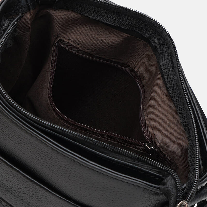 Сумка виготовлена з натуральної шкіри. Закривається клапаном на кнопки. Має 1 відділення на блискавці. Всередині 3 кишені для телефону та інших аксесуарів. Зовні 1 кишеня на блискавці та 1 кишеня на кнопці. Підкладка-текстиль. Плечовий ремінь регулюється по довжині.