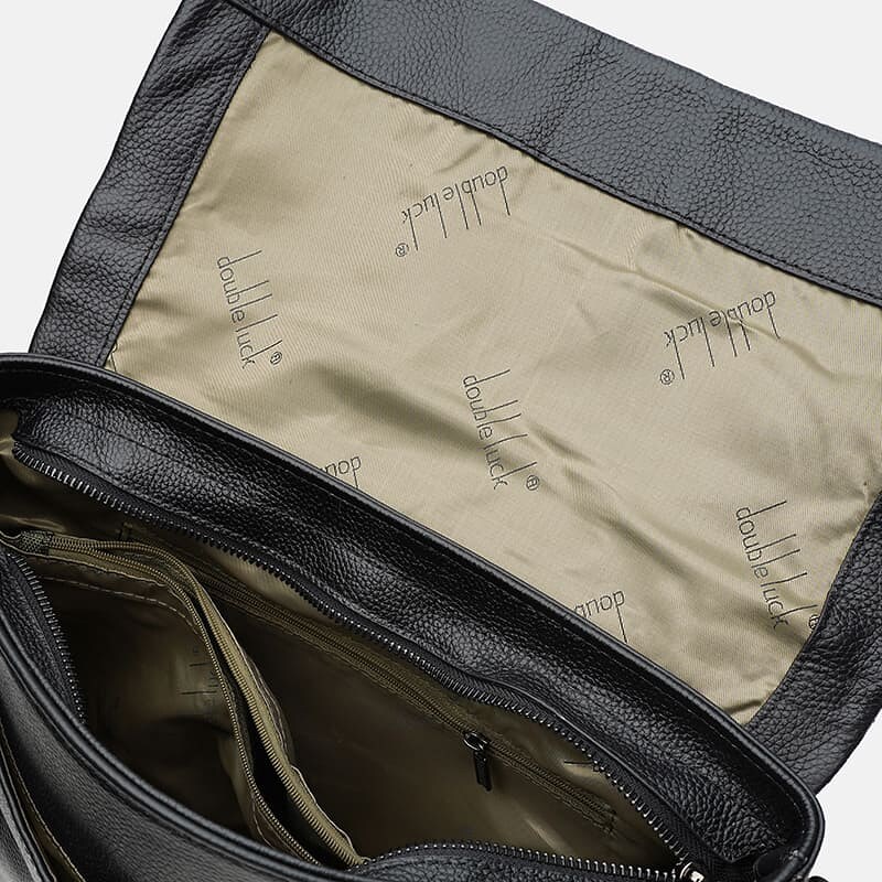 Чоловіча сумка виготовлена з щільної шкіри. Закривається клапаном на кнопках та блискавку. Має 2 відділення та 4 кишені всередині сумки. З лицьового боку-1 накладна кишеня, з тильного-кишеня на блискавці. Підкладка-текстиль. Плечовий ремінь регулюється по довжині.