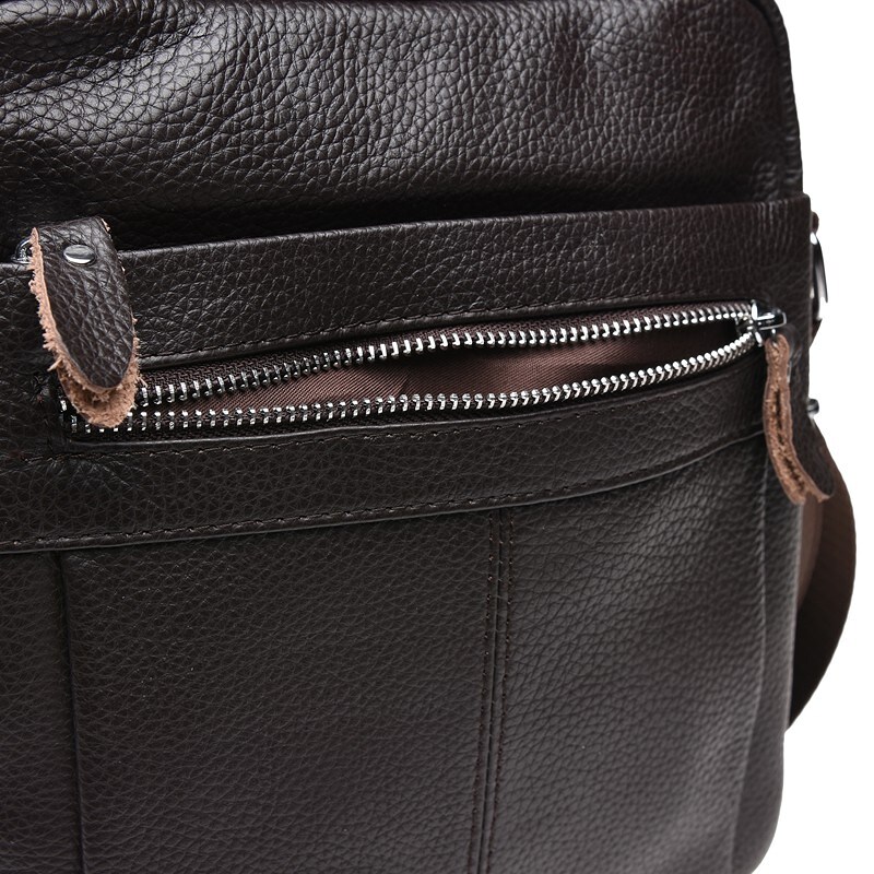 Дана модель сумки закривається на блискавку. Всередині -1 відділення і 1 кишеня на блискавці. Зовні-2 кишені на блискавці. Підкладка-текстиль. Плечовий ремінь регулюється по довжині.
