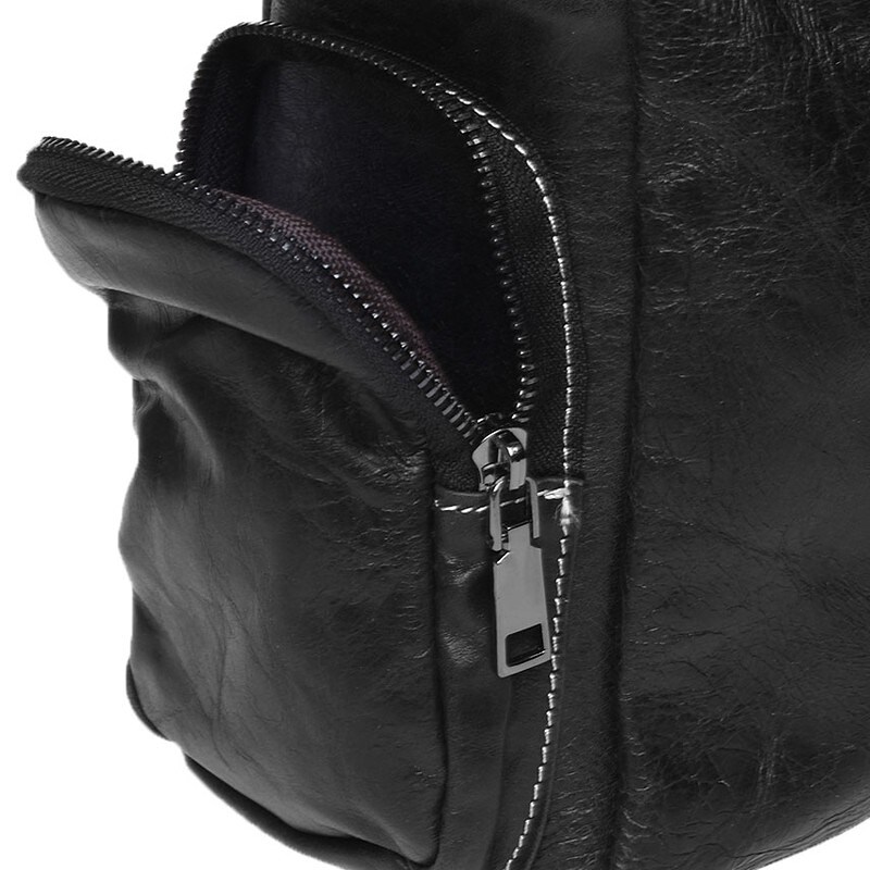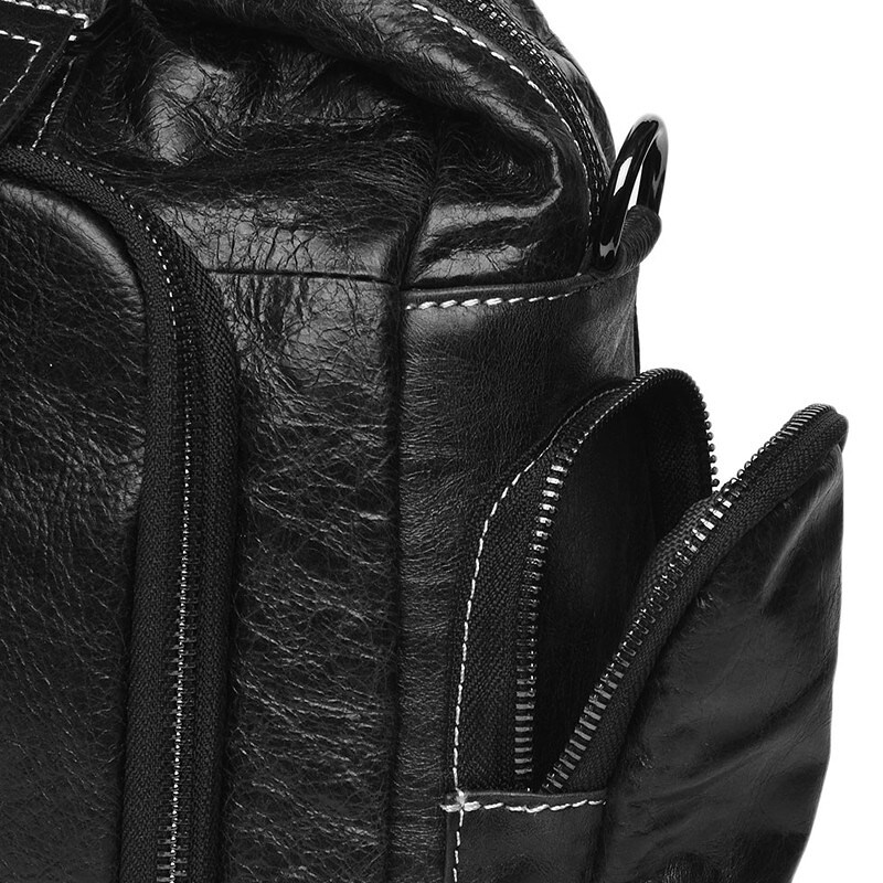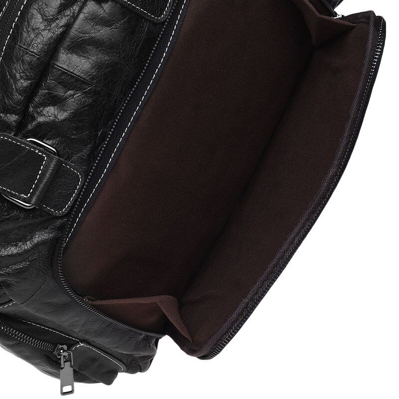 Містка сумка зі шкіри. Зручна і легка, підходить для міста, туристичних поїздок, спорту. Всередині має одне відділення, 1 кишеня на блискавці, 2 кишені для дрібниць. З тильного боку-1 кишеня на блискавці. З лицьового боку-містка накладна кишеня на блискавці. Є 2 бічні кишені на блискавці. Підкладка текстіль.Есть знімний шкіряний ремінь на плече.
