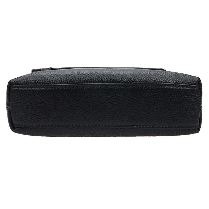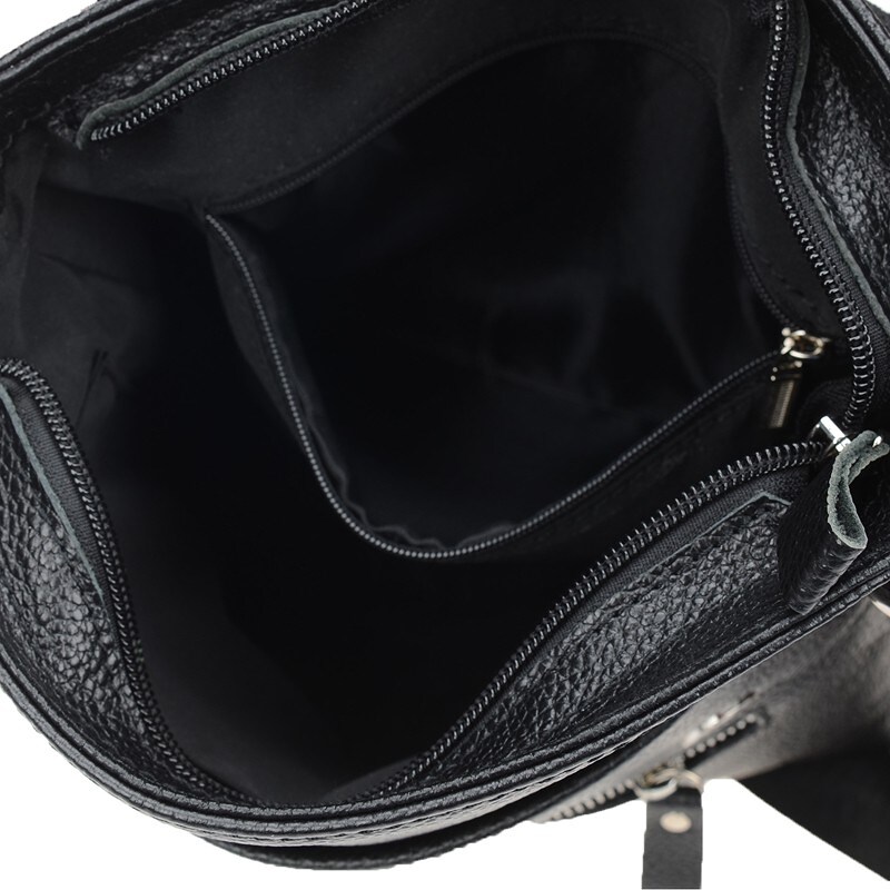 Чоловіча шкіряна сумка чорного кольору - кращий варіант для чоловіка на кожен день. Сучасний дизайн, продумана форма і оптимальна місткість-це не всі переваги цього месенджера! Закривається на блискавку. Усередині 1 кишеня на блискавці і 2 кишені під інші дрібниці. Зовні -2 кишені на блискавці і 1 накладна кишеня з лицьового боку. Підкладка-текстиль. Колір фурнітури-срібло. Плечовий ремінь регулюється.
