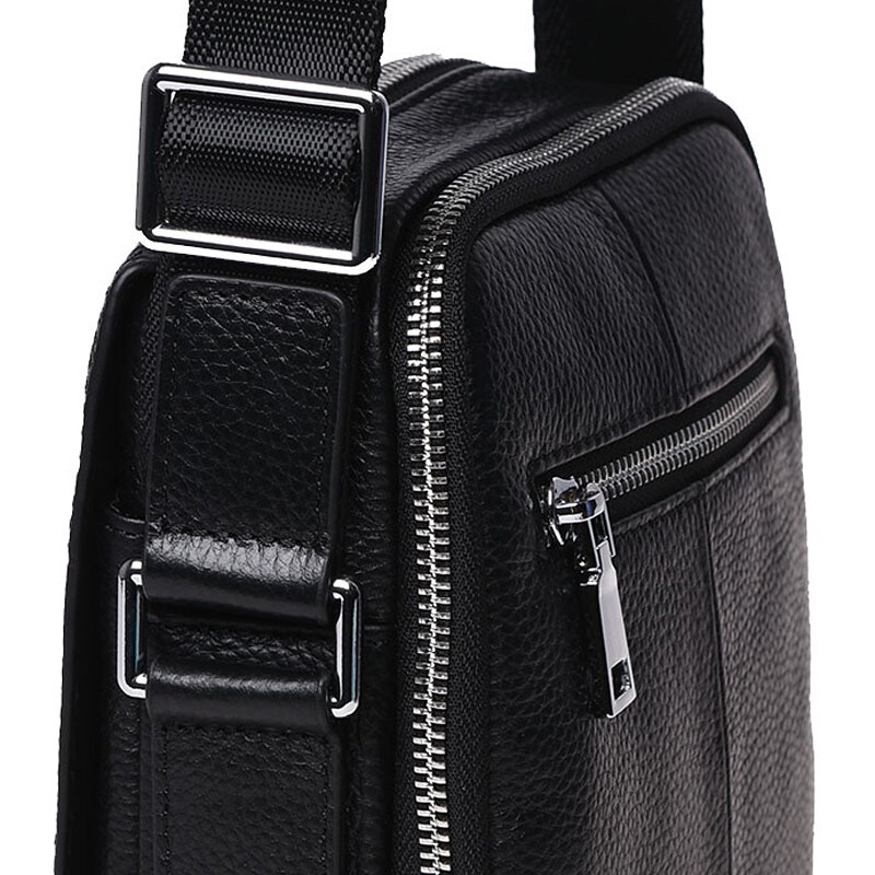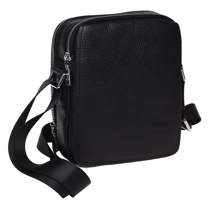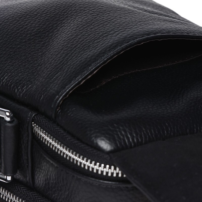 Сумка через плече з якісної натуральної шкіри. Сумка закривається на клапан з лицьового боку. Має 2 основних відділення, всередині 3 кишені для дрібниць. З тильного боку-1 кишеня на блискавці. Підкладка текстиль. Колір фурнітури срібло. Фурнітура- метал. Незнімний плечовий ремінь.