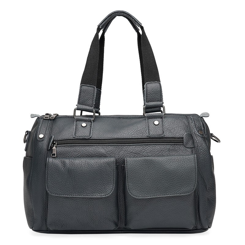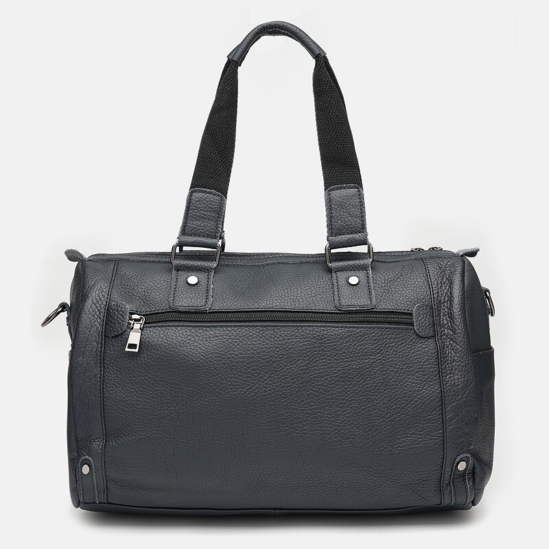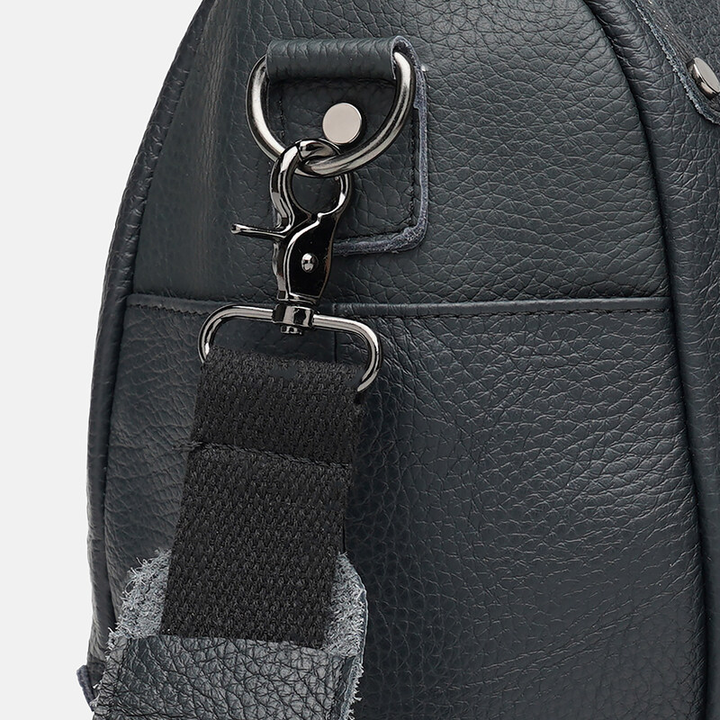 Містка сумка зі шкіри. Зручна і легка, підходить для міста, туристичних поїздок, спорту. Всередині має одне відділення, одну кишеню на блискавці, дві кишені для дрібниць. З тильного боку: одна кишеня на блискавці. З лицьового боку: містку кишеню на блискавці і дві накладні кишені на кнопці. Є дві бічні кишені. Підкладка: текстиль. Є знімний плечовий ремінь.