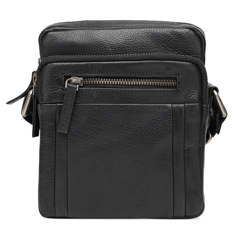 Лаконічний фасон цієї сумки виконаний з натуральної шкіри в чорної або коричневої кольоровії гамі. Внутрішній простір оптимально збалансовано, що дозволяє вмістити смартфон, банківські картки та інші важливі речі власнику. Сумка закривається на блискавку. Усередині -1 основне відділення і 2 кишені. З лицьового боку-2 накладні кишені на блискавці, з тильной- 1 кишеня на кнопці. Підкладка-якісний текстиль. Фурнітура-метал. Сумка має шкіряний плечовий ремінь, який регулюється по довжині.