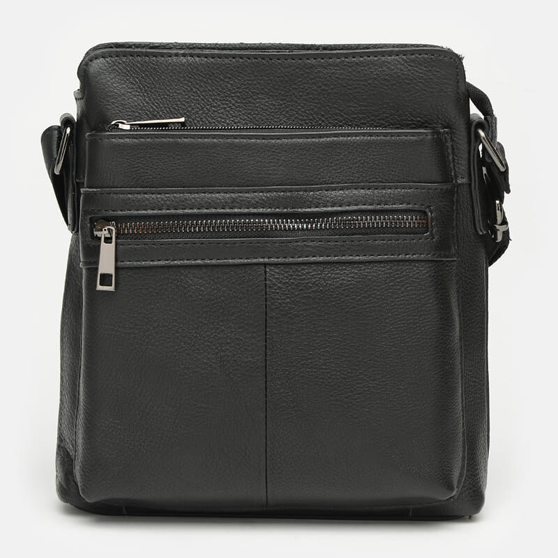 Сумка виконана з якісної натуральної шкіри. Має 1 основне відділення на блискавці. Усередині -3 кишені для телефону, гаманця і інших аксесуарів. З зовні -3 кишені на блискавці. Підкладка-текстиль. Колір фурнітури-срібло. Незнімний плечовий ремінь регулюється по довжині.