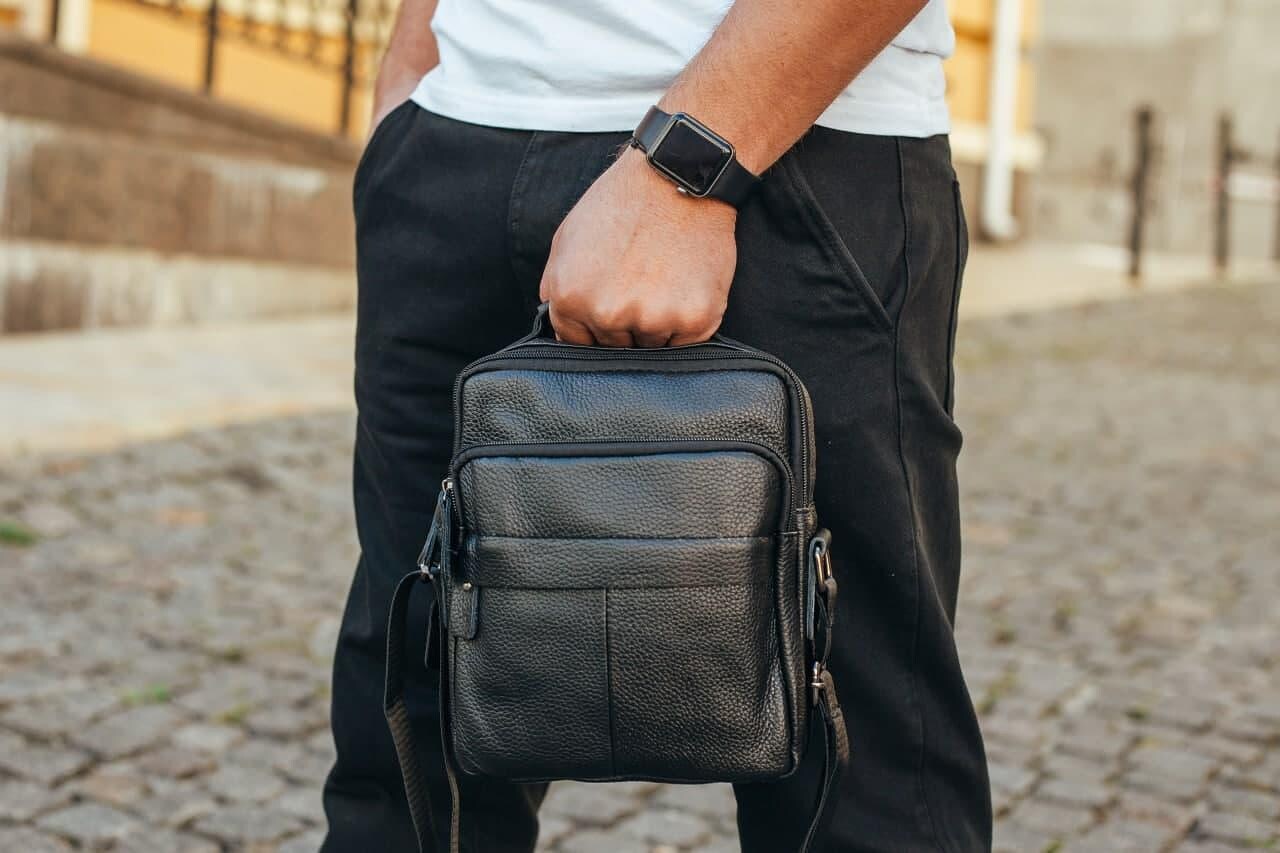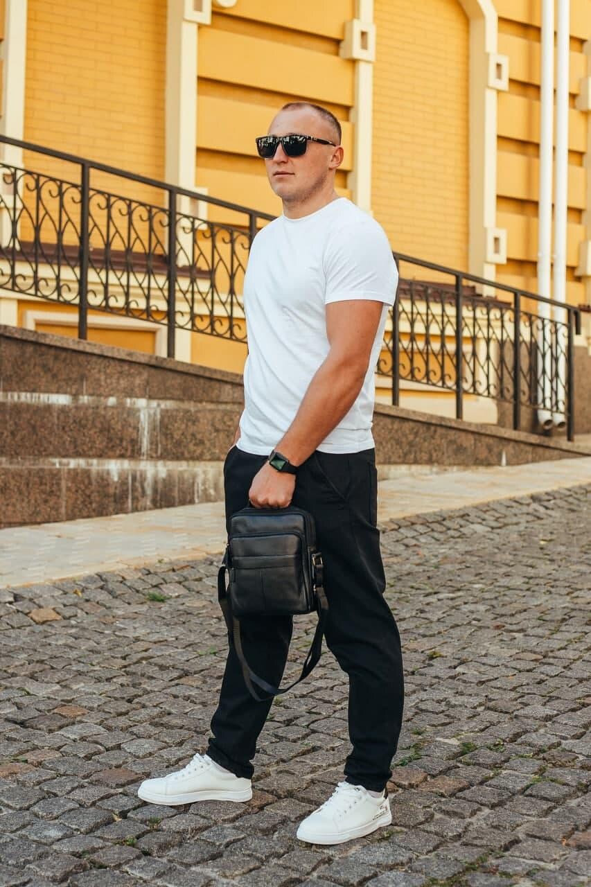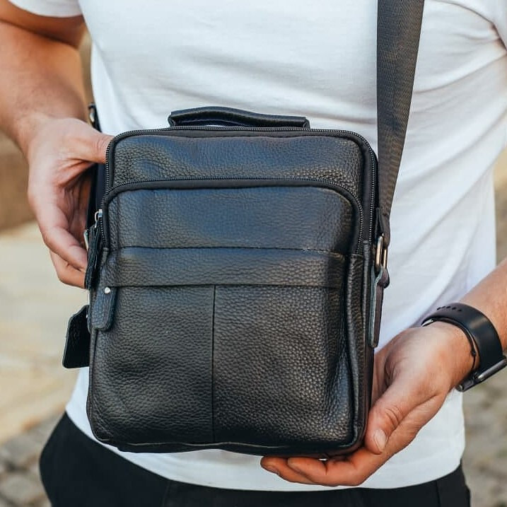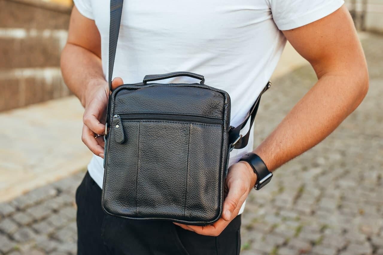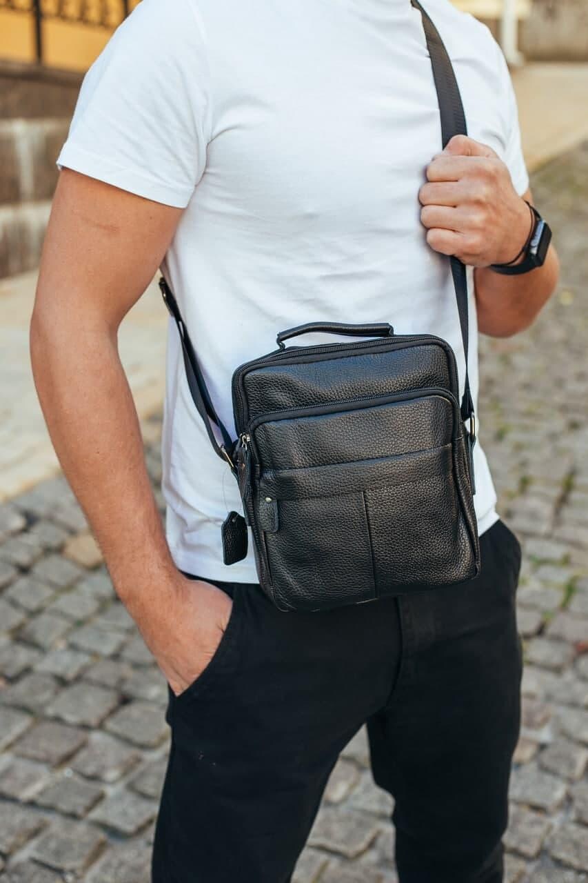 Сумка чоловіча через плече з натуральної шкіри чорна Bexhill DF-53367