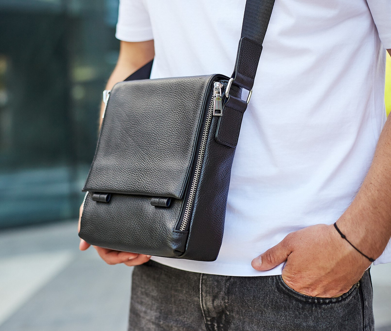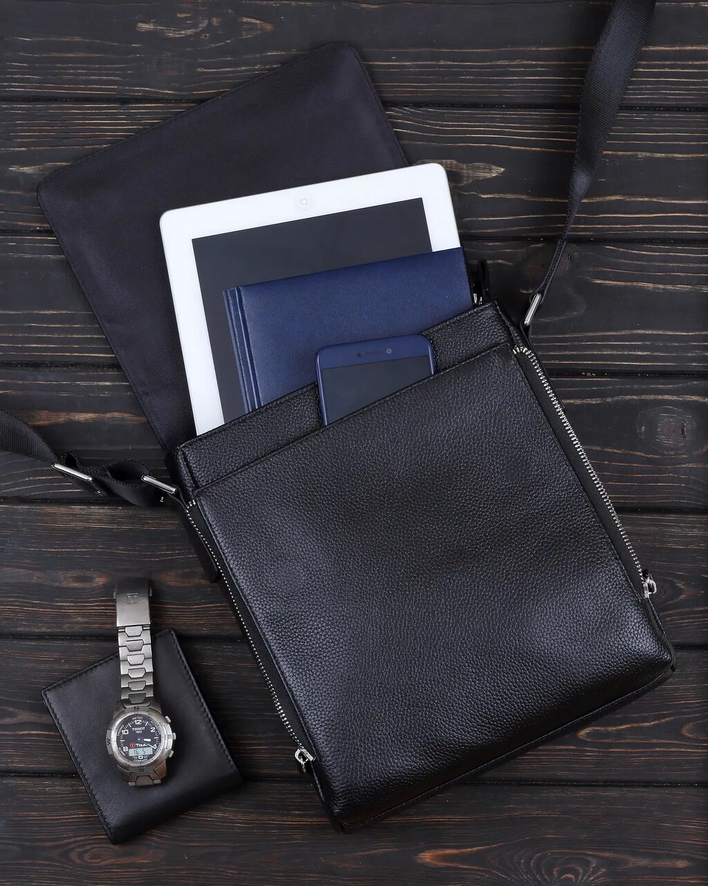 Шкіряна чоловіча сумка-месенджер з натуральної шкіри чорна Tiding Bag 6197