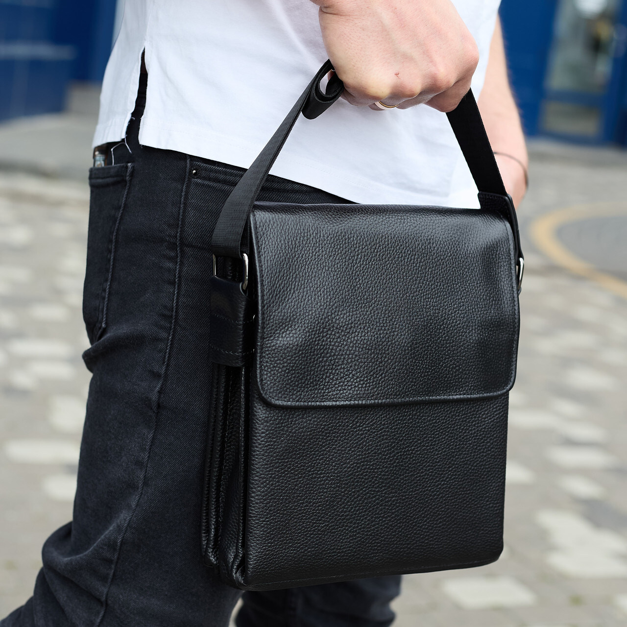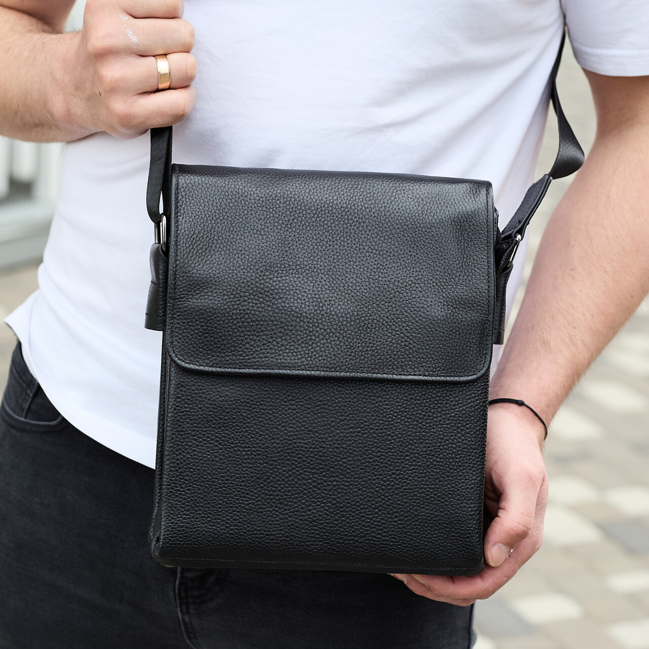 Сумка месенджер шкіряна барсетка для чоловіка чорна Tiding Bag 35775