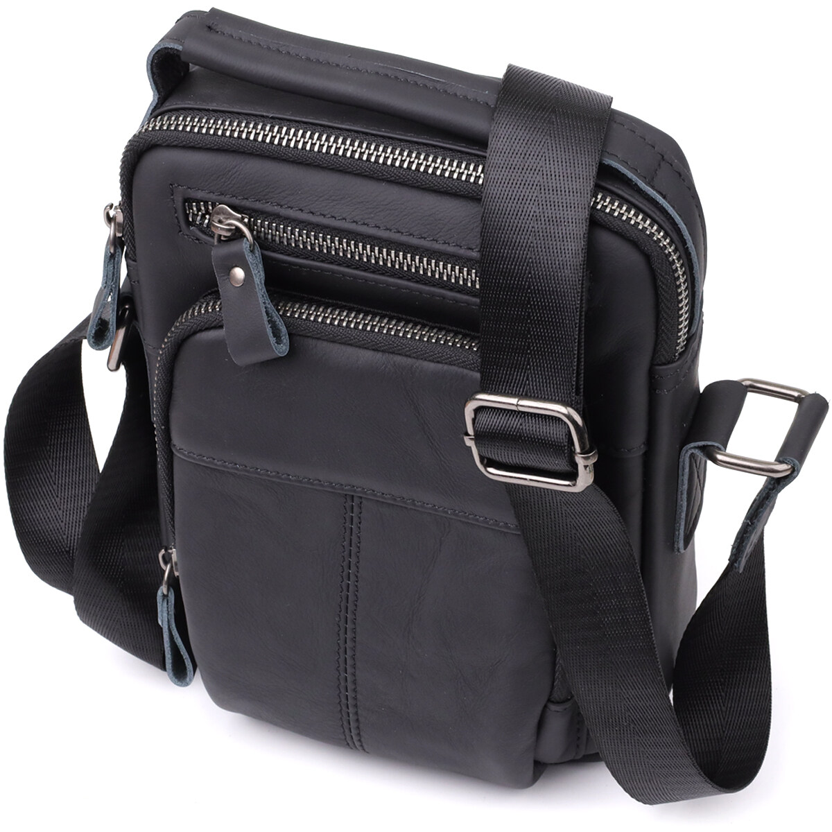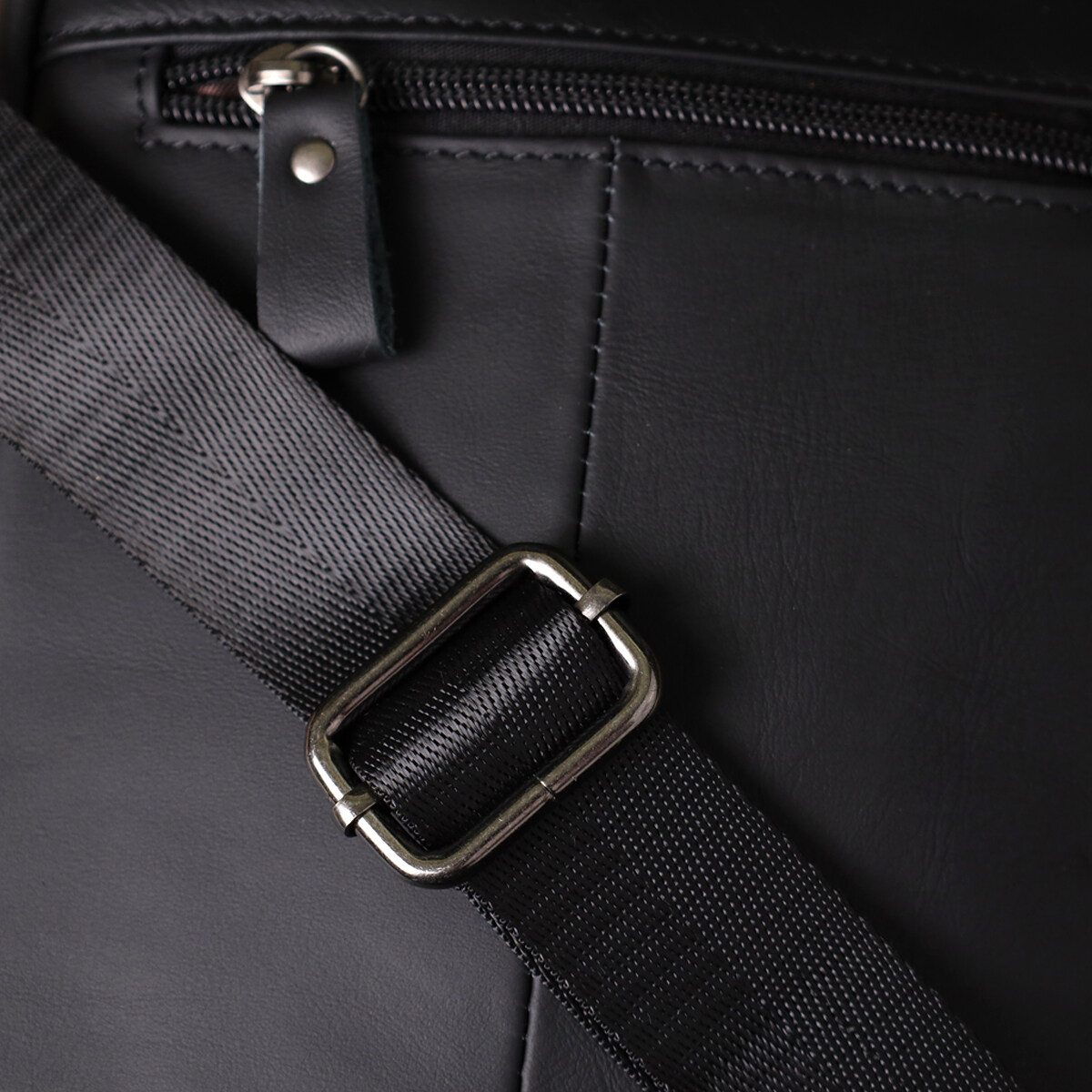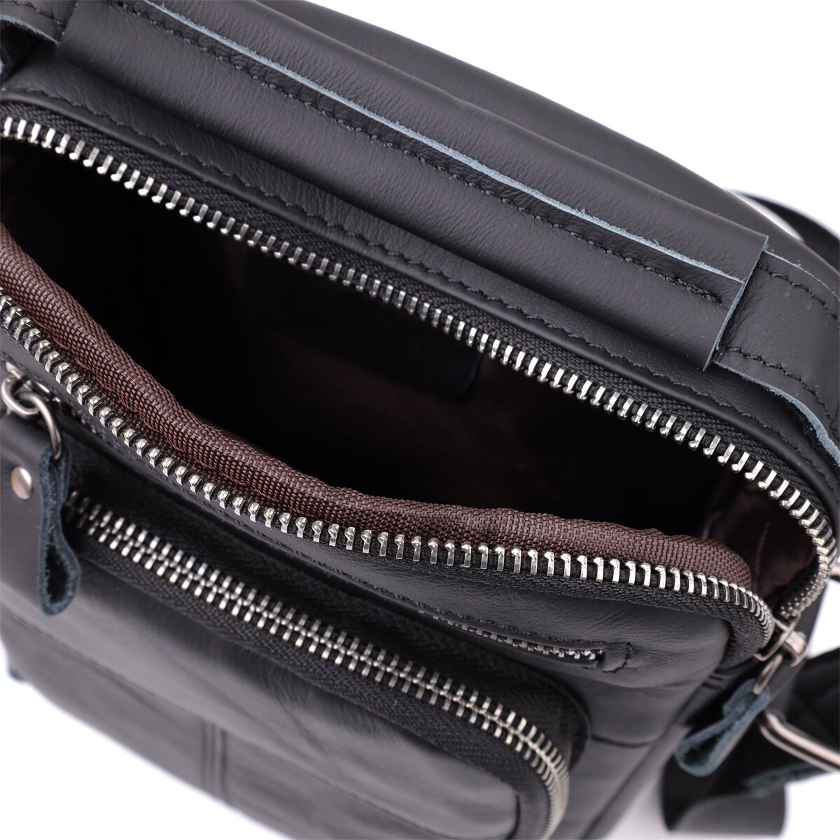 Чорна чоловіча сумка з матової натуральної шкіри - це практичний та стильний аксесуар, створений для тих, хто цінує зручність, стриману естетику та якість матеріалів. Завдяки універсальному дизайну сумка органічно впишеться в діловий гардероб, повсякденний образ або міський стиль. Вона стане надійним супутником протягом дня, дозволяючи завжди тримати необхідні речі під рукою і виглядати елегантно.